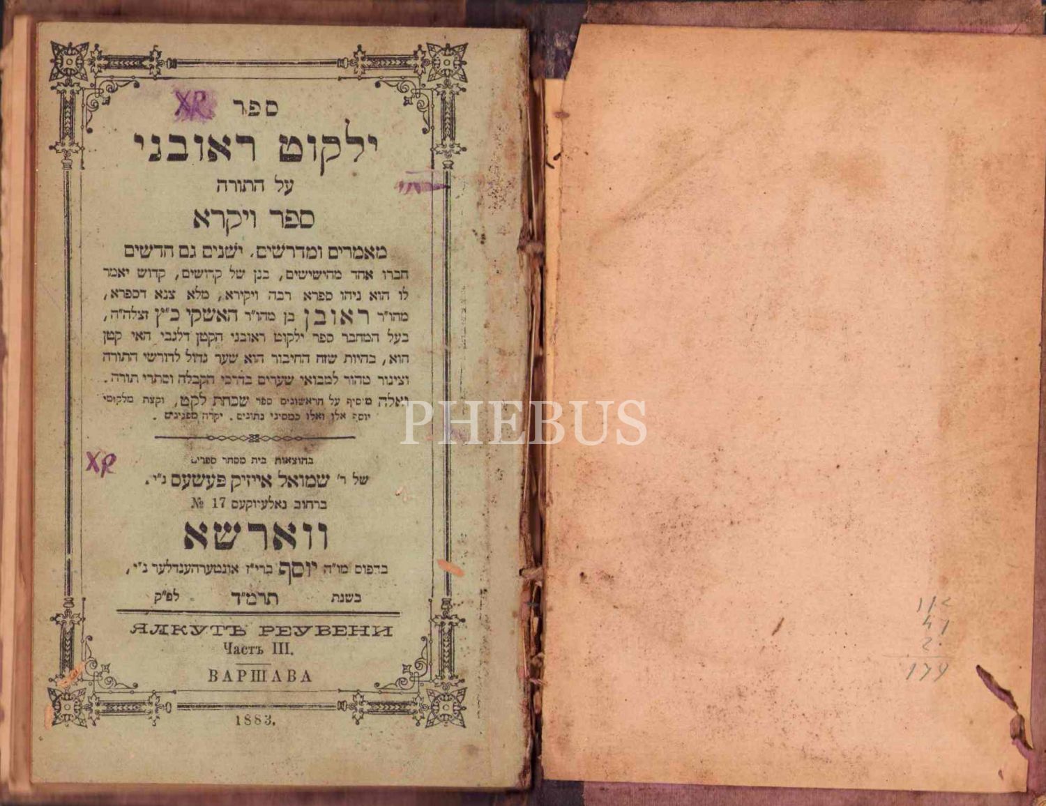 İbranice Kitap, Tevrat 3. Kısım, Vayikra (וַיִּקְרָא ), Varşova 1883 Baskı, 91 sayfa, İçi Yorum İçermektedir. 13x21 cm, Forması dağınık