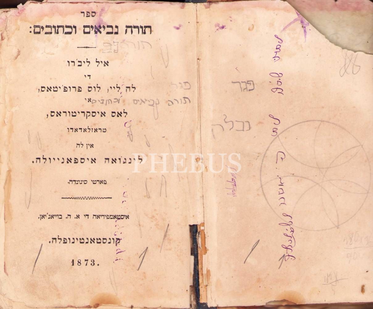 İbranice Kitap, Tanakh (תַּנַ״ךְ) ( Torah - Neviʾim - Ketuvim) 1873 Baskı, Constantinople Boyacıyan Matbaası, 557 sayfa, İbranice-Ladino, 14x22 cm