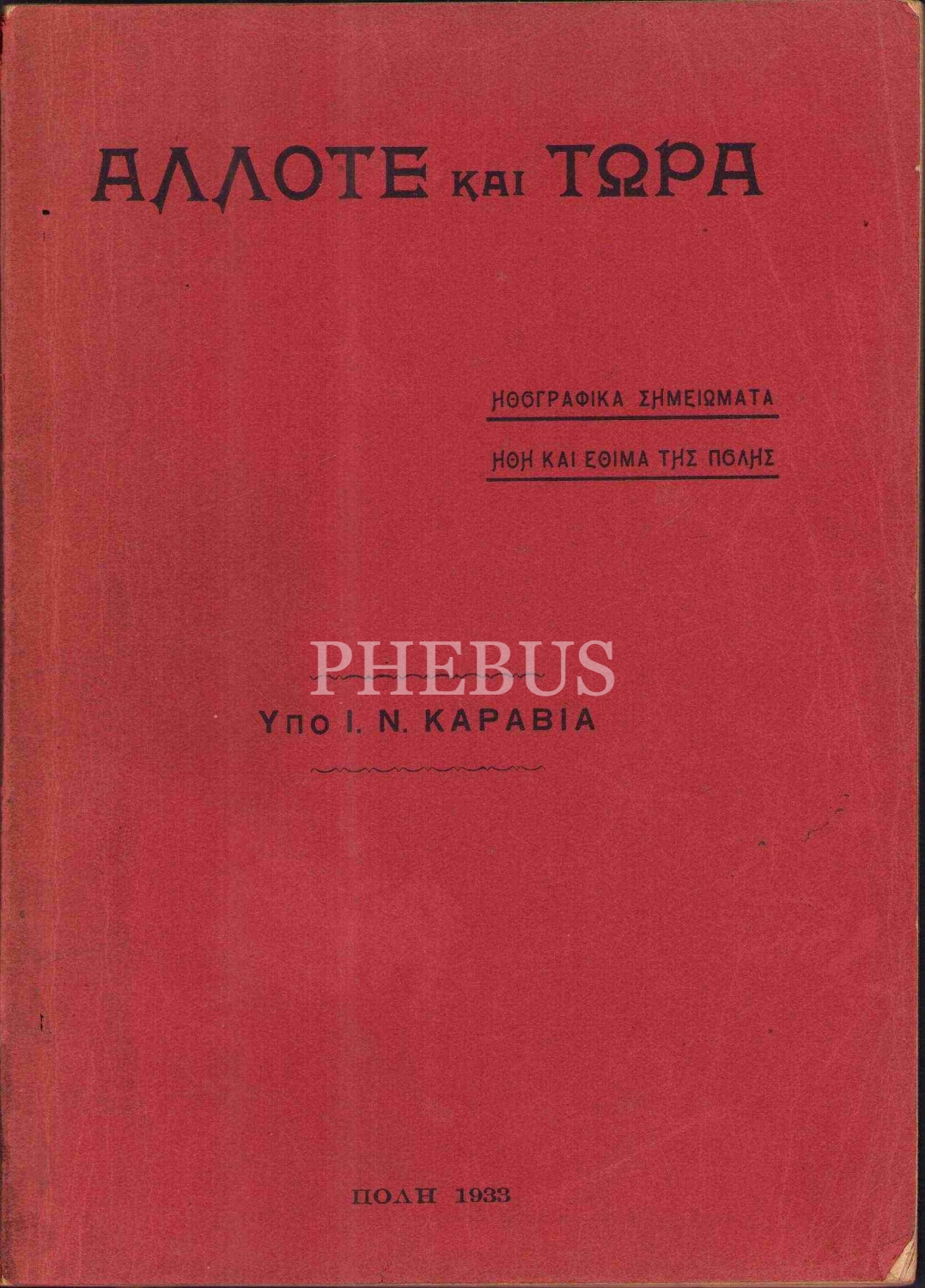 Αλλοτε και Τωρα-Ηθογραφικα Σημειωματα-Ηθη και Εθιμα της Πολης(Bir Zamanlar Ve Şimdi-Etnografik Notlar-İstanbul'un Gelenek ve Görenekleri), I.N.Karavya, İstanbul 1933, 111 sayfa, 14x20 cm