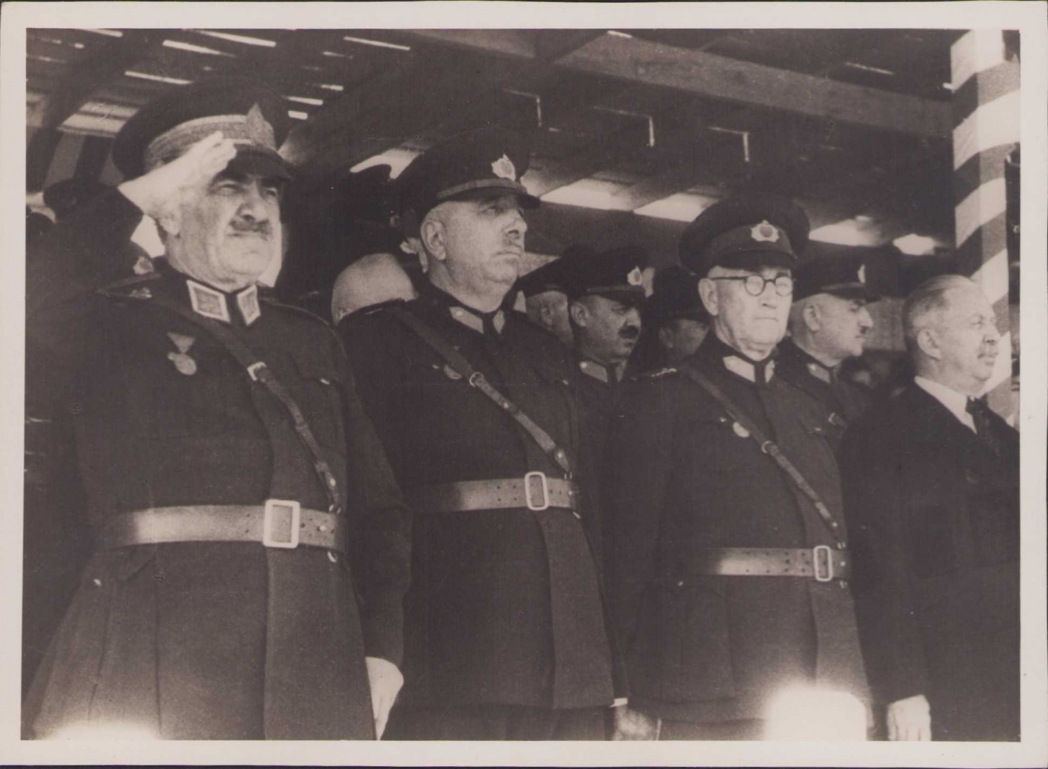 İstiklal Madalyalı Mareşal Fevzi Çakmak Fahrettin Altay ve bir grup madalyalı paşa ile askeri selamlamada,