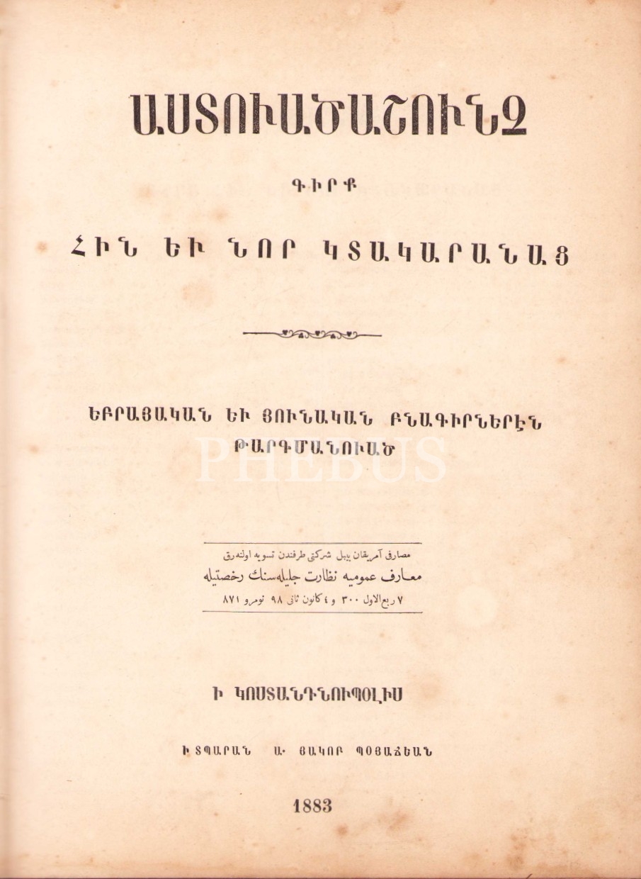 Ermenice İncil [Asdvadzaşunç], Hagop Boyacıyan Matbaası, İstanbul - 1883 Baskı, 1169 sayfa, 20x28 cm