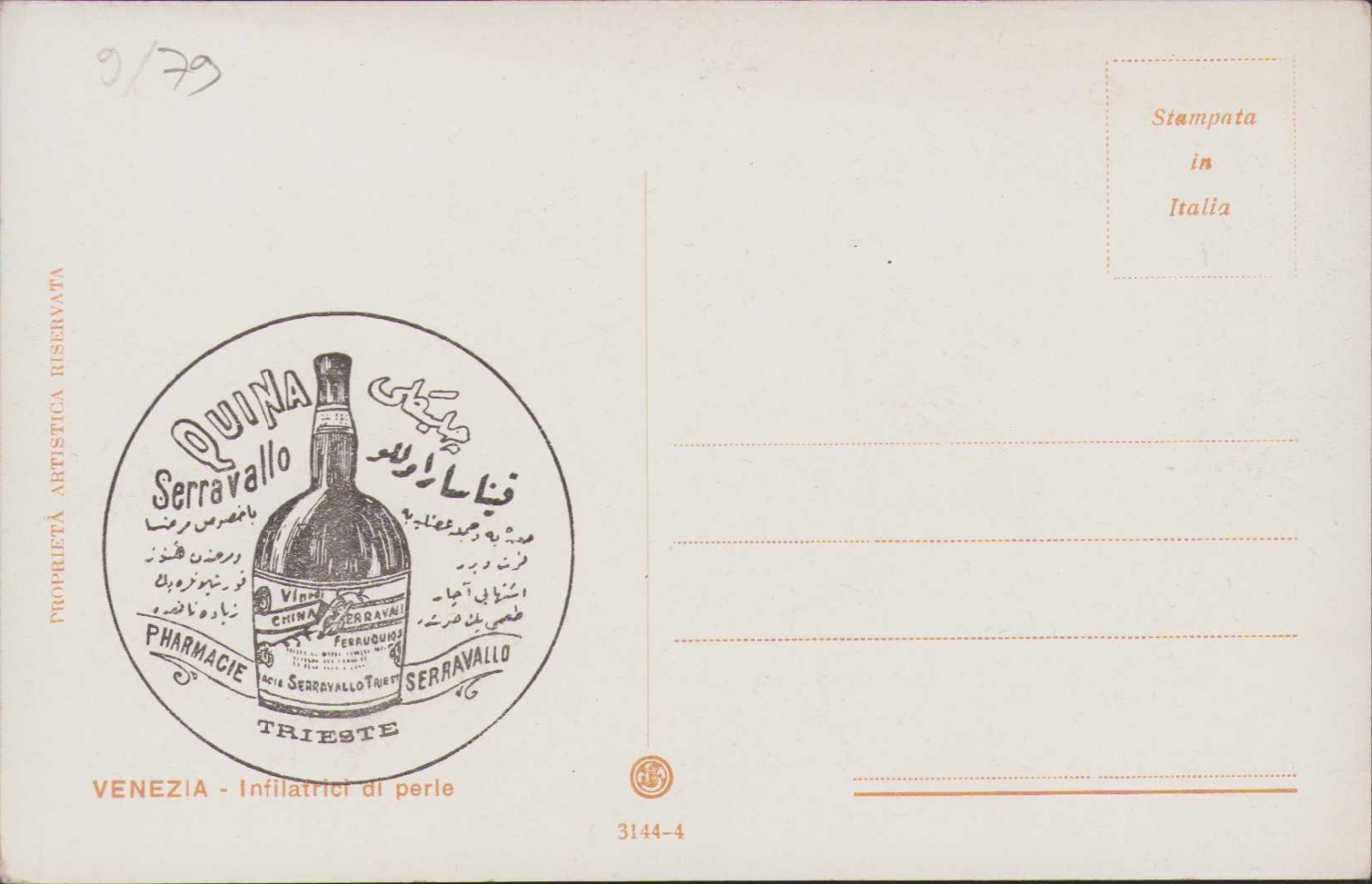 Osmanlıca - Fransızca Quina Serravallo Kuvvet Şarabı Reklam Kartpostalı, Venedik baskısı