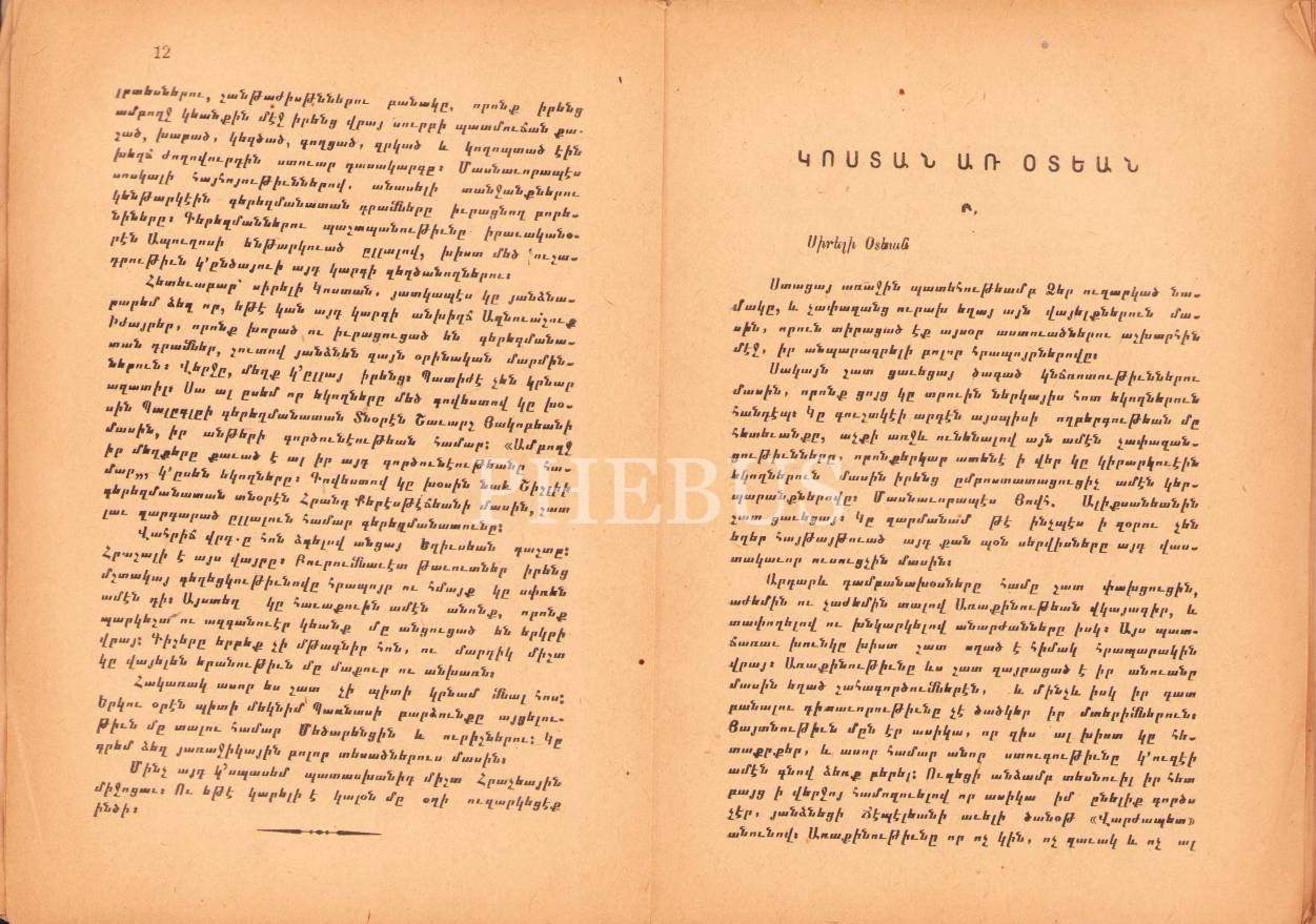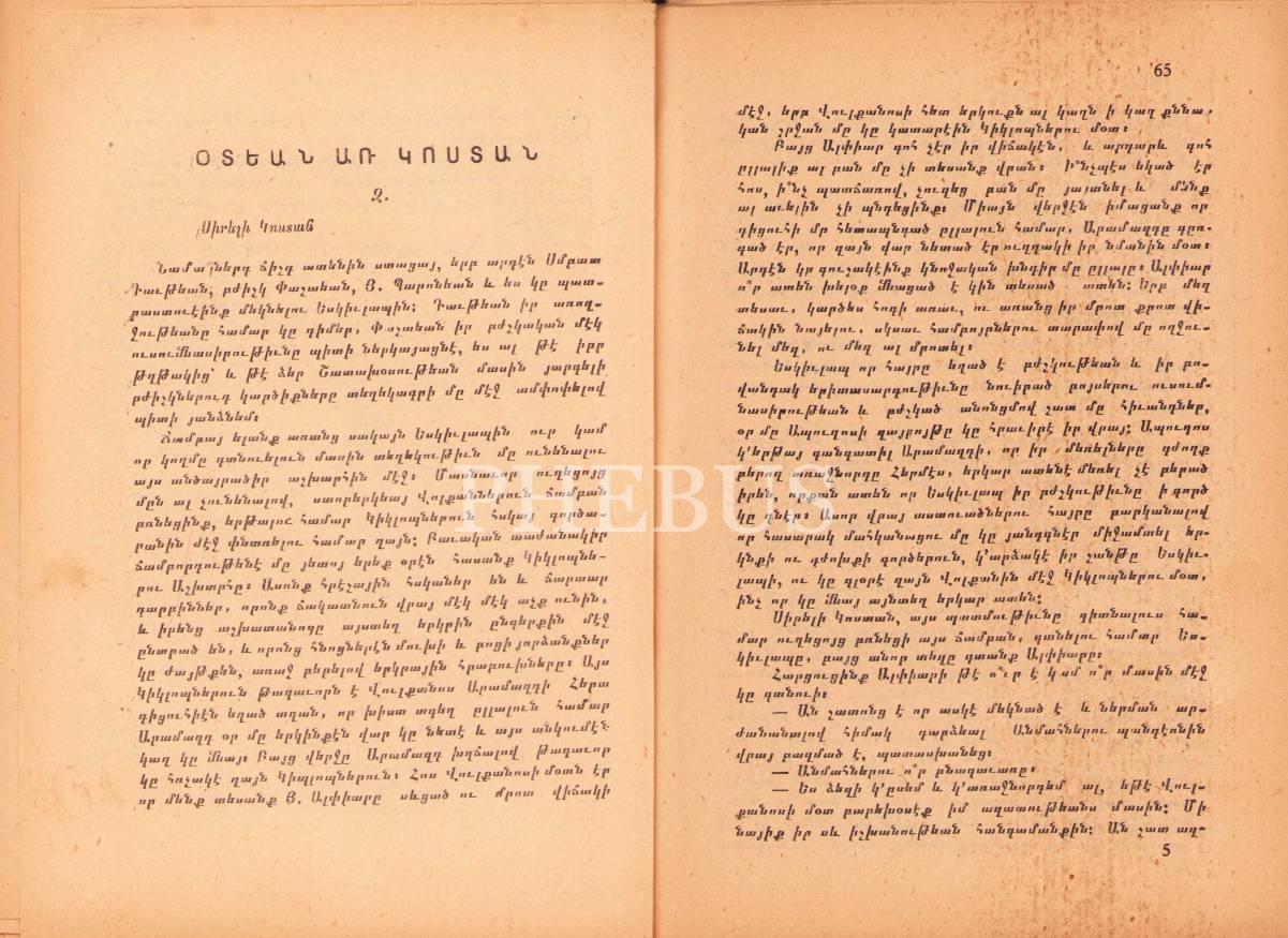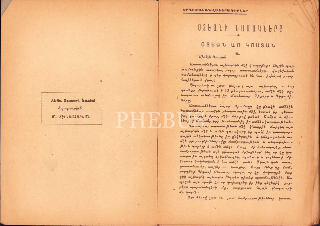 Ermenice Kitap: Odyanın Mektupları, 1. Dönem [Odyani Namagner, 1. Şrçan], Der-Sahagyan Matbaası, İstanbul - 1946, 176 sayfa, 14x20 cm