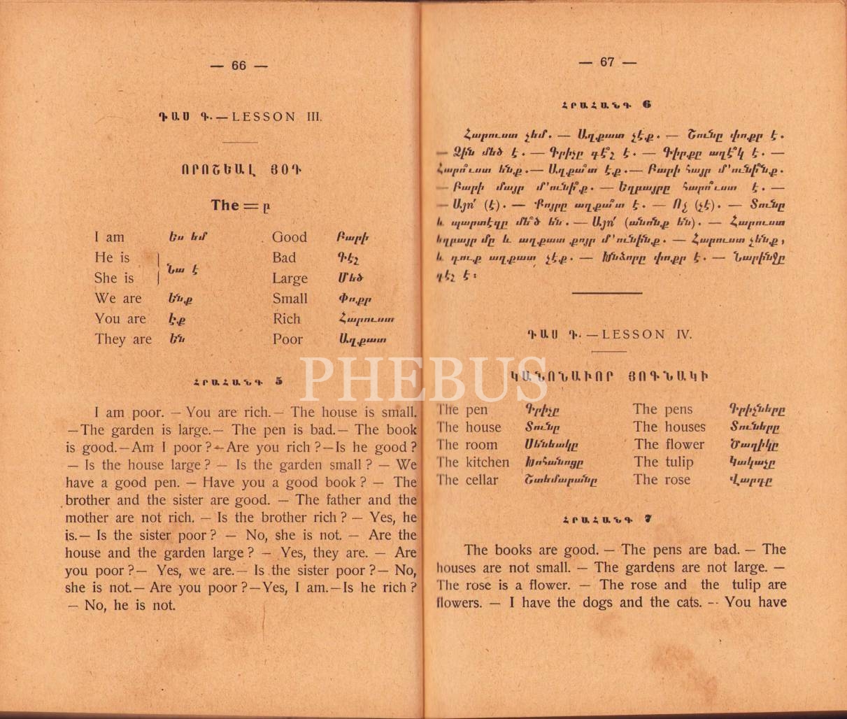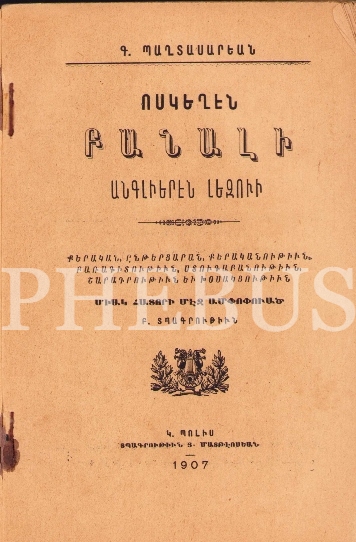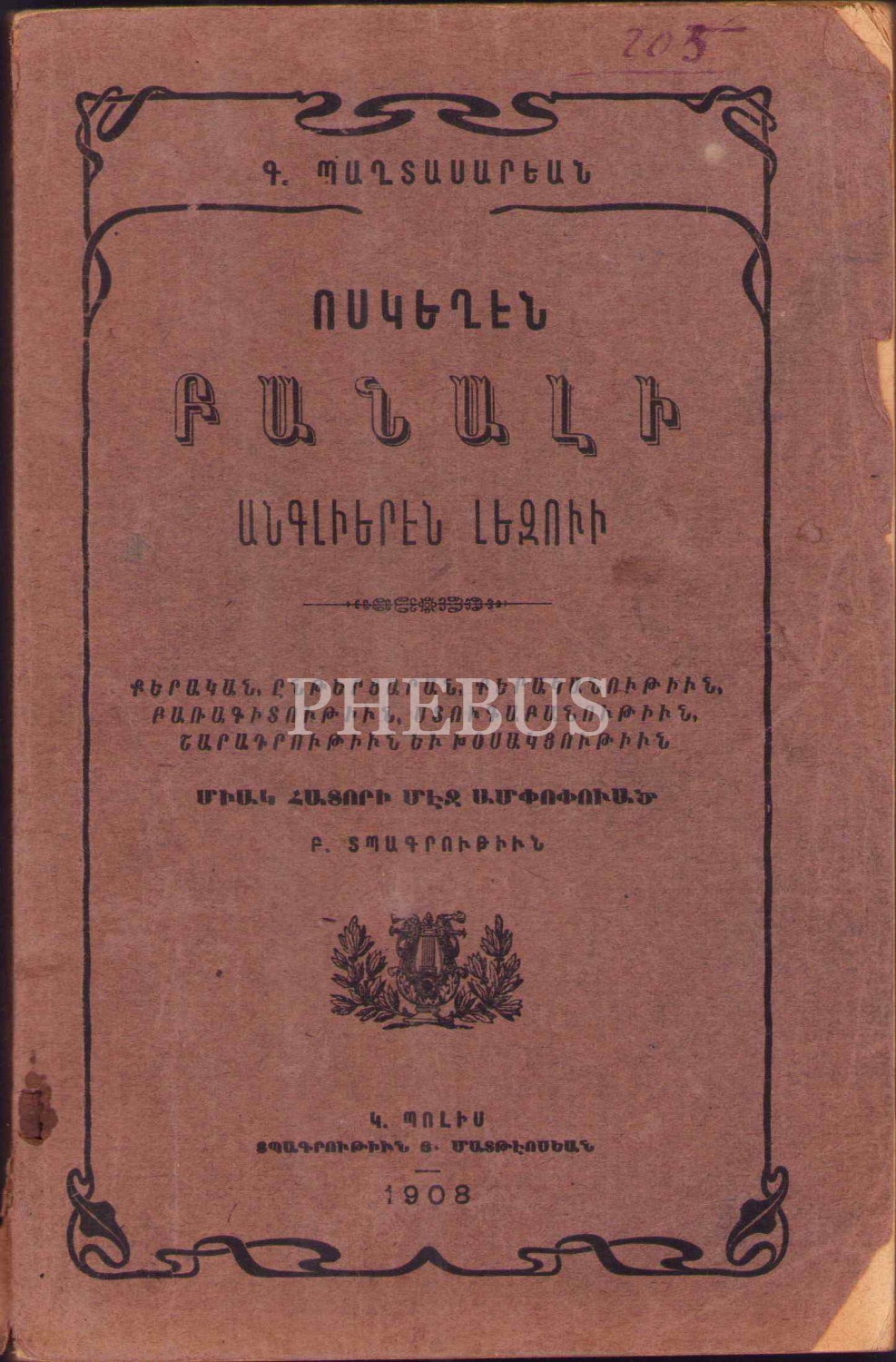 Ermenice-İngilizce Kitap: İngilizce Lisanının Altın Anahtarı [Vosgeğen Paneli Ankliyeren Lezui], K. Bağdasaryan, H. Madteosyan Matbaası, İstanbul - 1908, 361 sayfa, 12x19 cm
