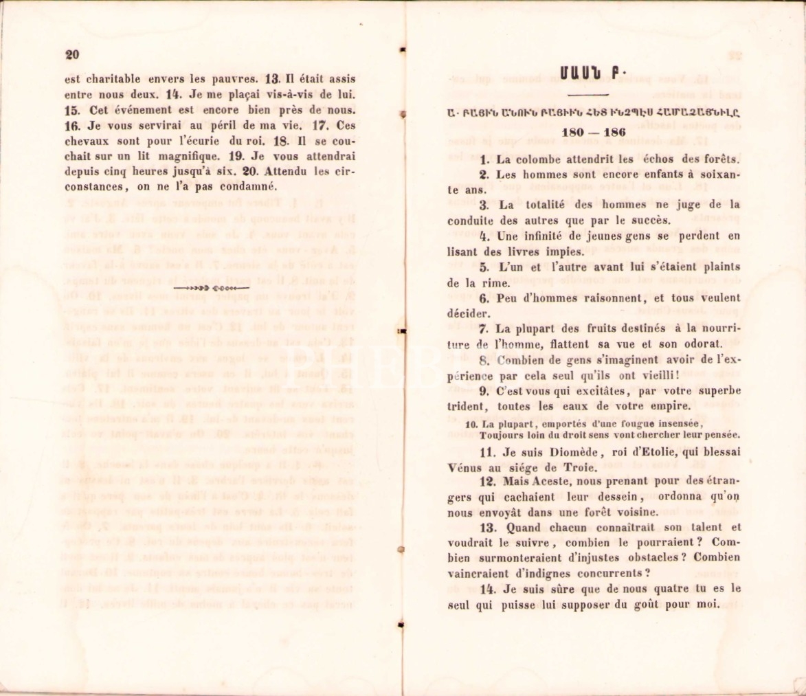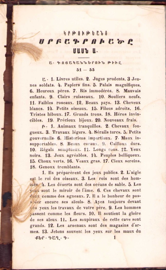 Ermenice-Fransızca Kitap: Fransızca Lisanının Grameri, 3. Cilt [Keraganutyun Kağğiyeren Lezui, Hador 3.], Rahip Ğevont Hovnanyan, Meryem Ana Manastırı, Viyana - 1855, 75 sayfa, 11x18 cm