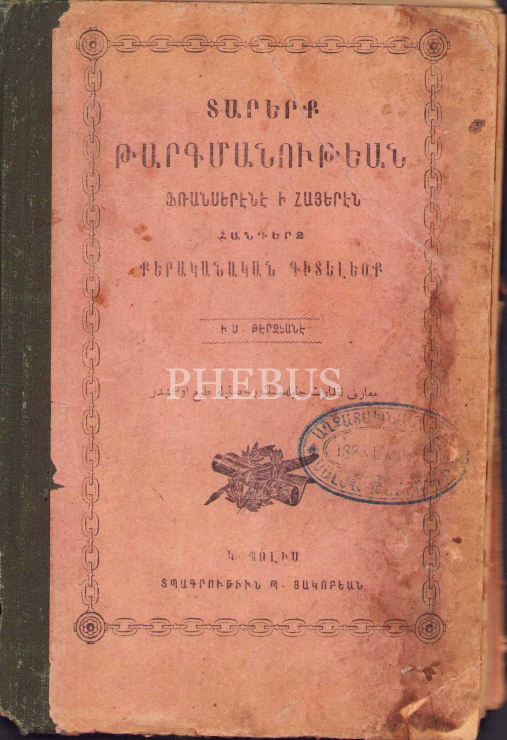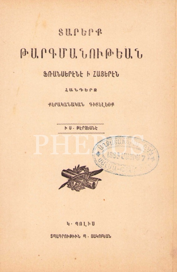 Kitabın künyesinde 1888 tarihli Ermenice damga bulunmaktadır.