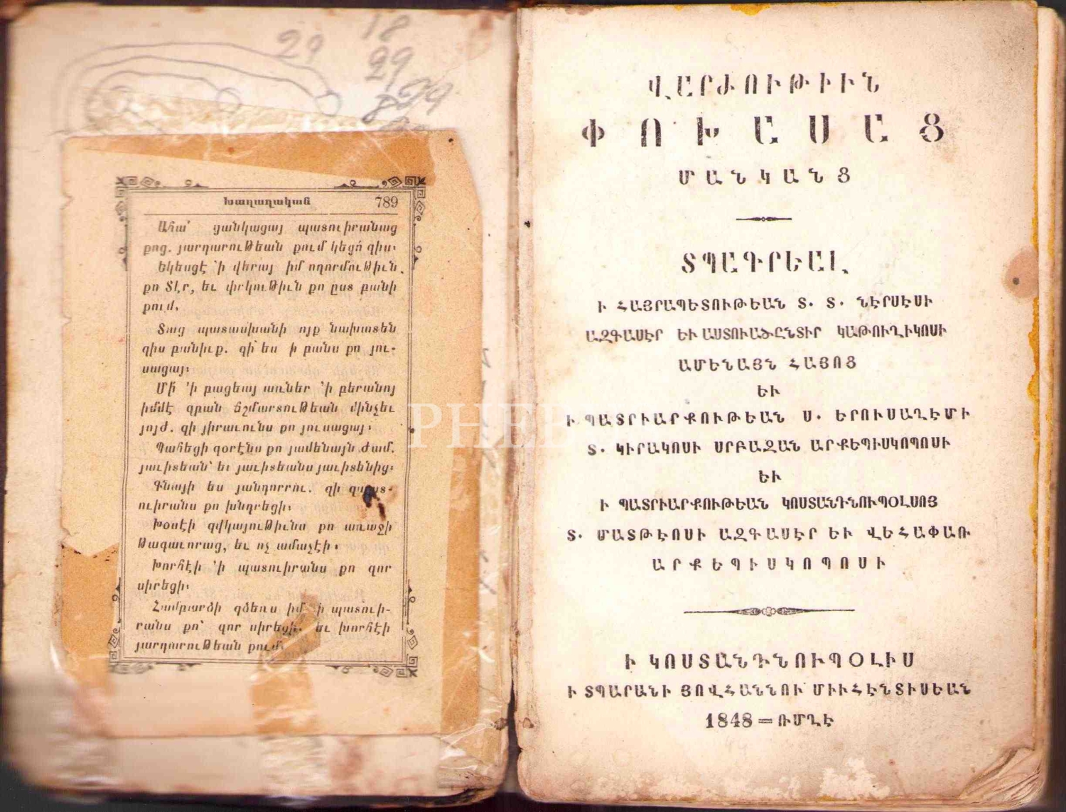 Baskı yeri Ermenice yazılmıştır.