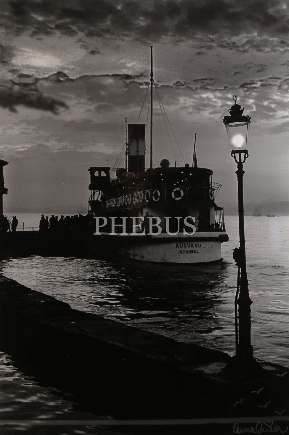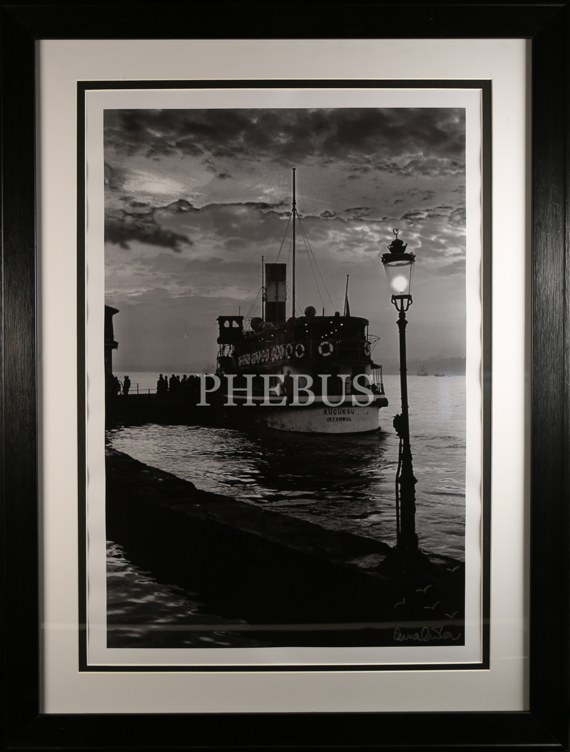 "İstanbul: Küçüksu Vapuru Beylerbeyi İskelesinde" Kabartma ve Islak imzalı ve Arkası "Photographed by Ara Güler" Kaşeli Fotoğraf, 40x60 cm.