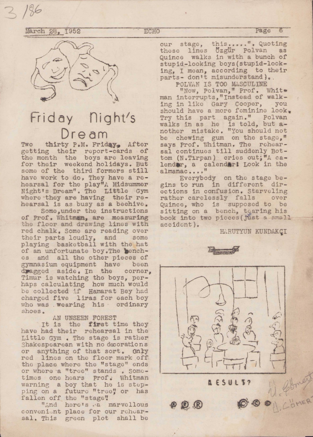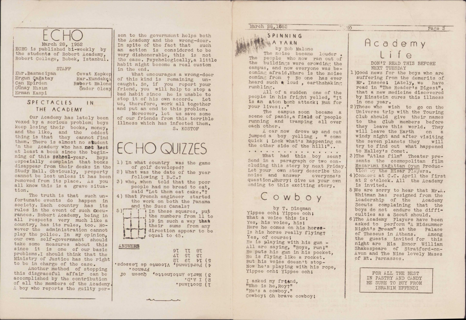 Robert Koleji Echo dergisi, 1952 tarihli, 6 sayfa, 20x28cm
