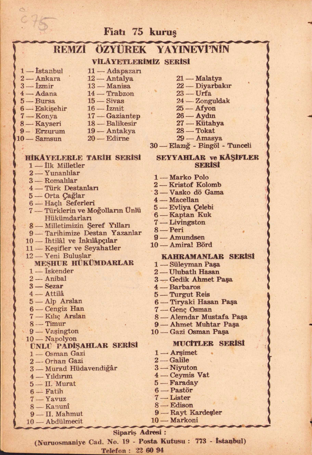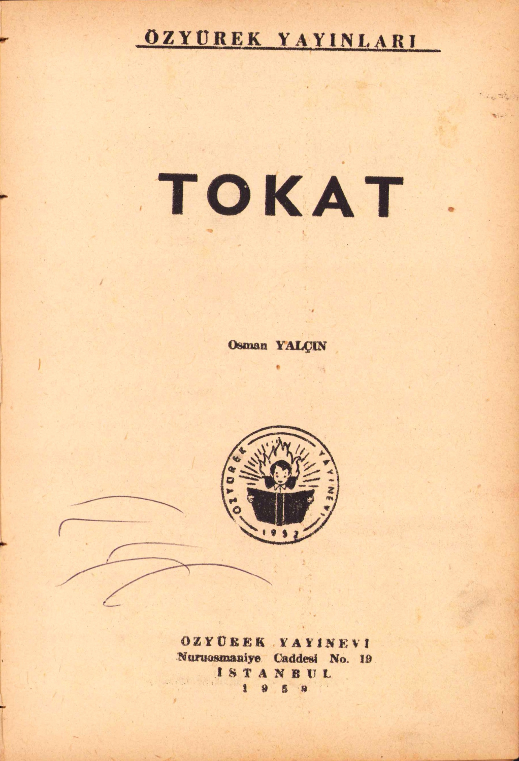 Kısa Tarih: Tokat, Yazan Osman Yalçın, Özyürek Yayınevi, İstanbul, 1959 baskısı, 32 sayfa, ederi 75 kuruş, 16,5x24 cm