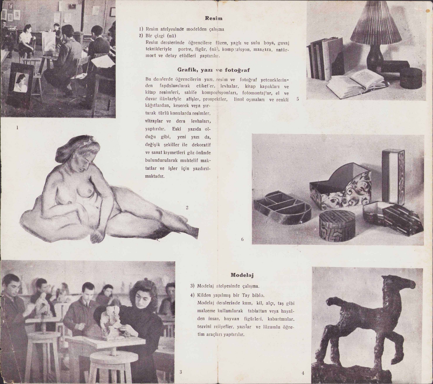Gazi Terbiye Enstitüsü Resim-İş Şubesi Öğrenci Sergisi broşürü, katlamalı 4 yaprak, 12x22cm