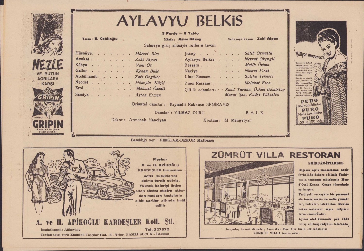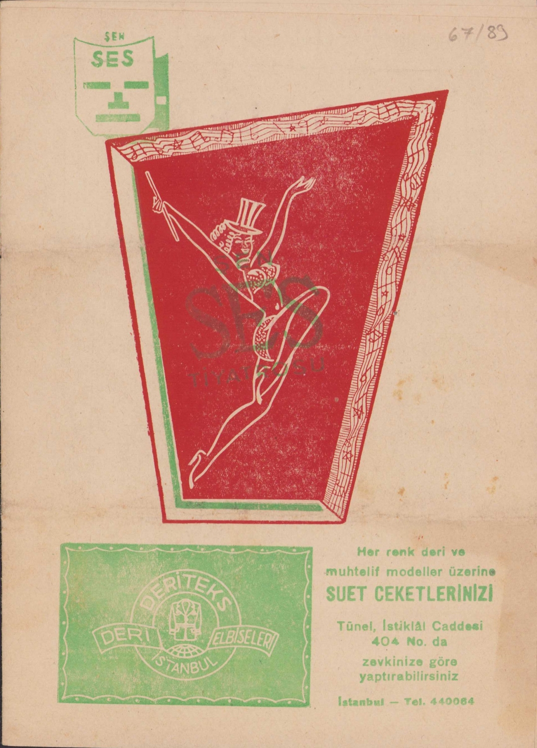 Şen Ses Tiyatrosu tanıtım broşürü, 8 sayfa, dönem reklamlı, 16x23cm