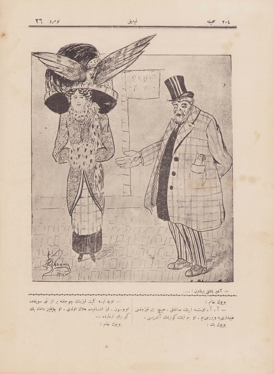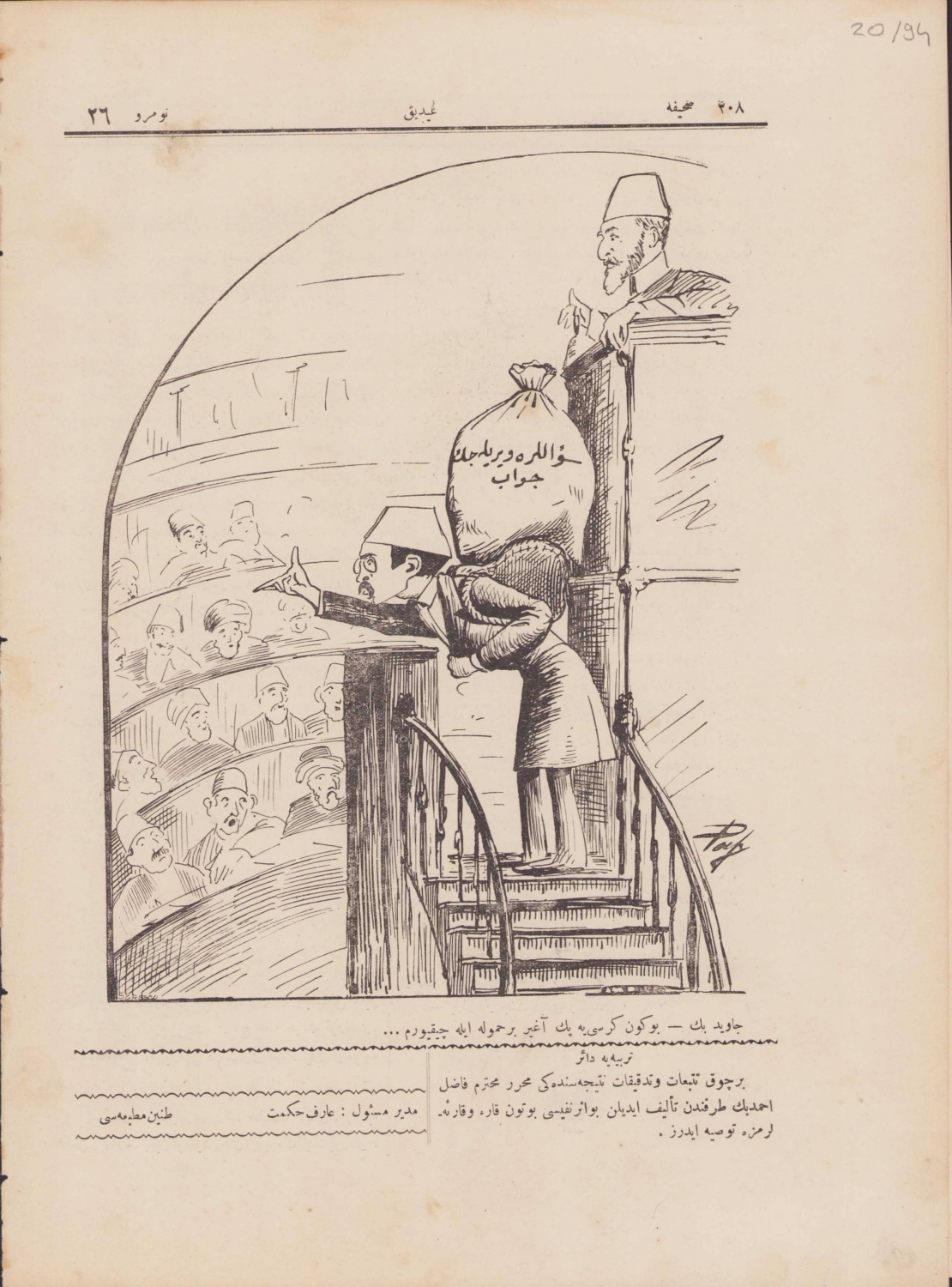 Osmanlıca Gıdık Mizah Gazetesi, kapak Meşrutiyet Zaptiye Nazırı, 8 sayfa, 24x33cm