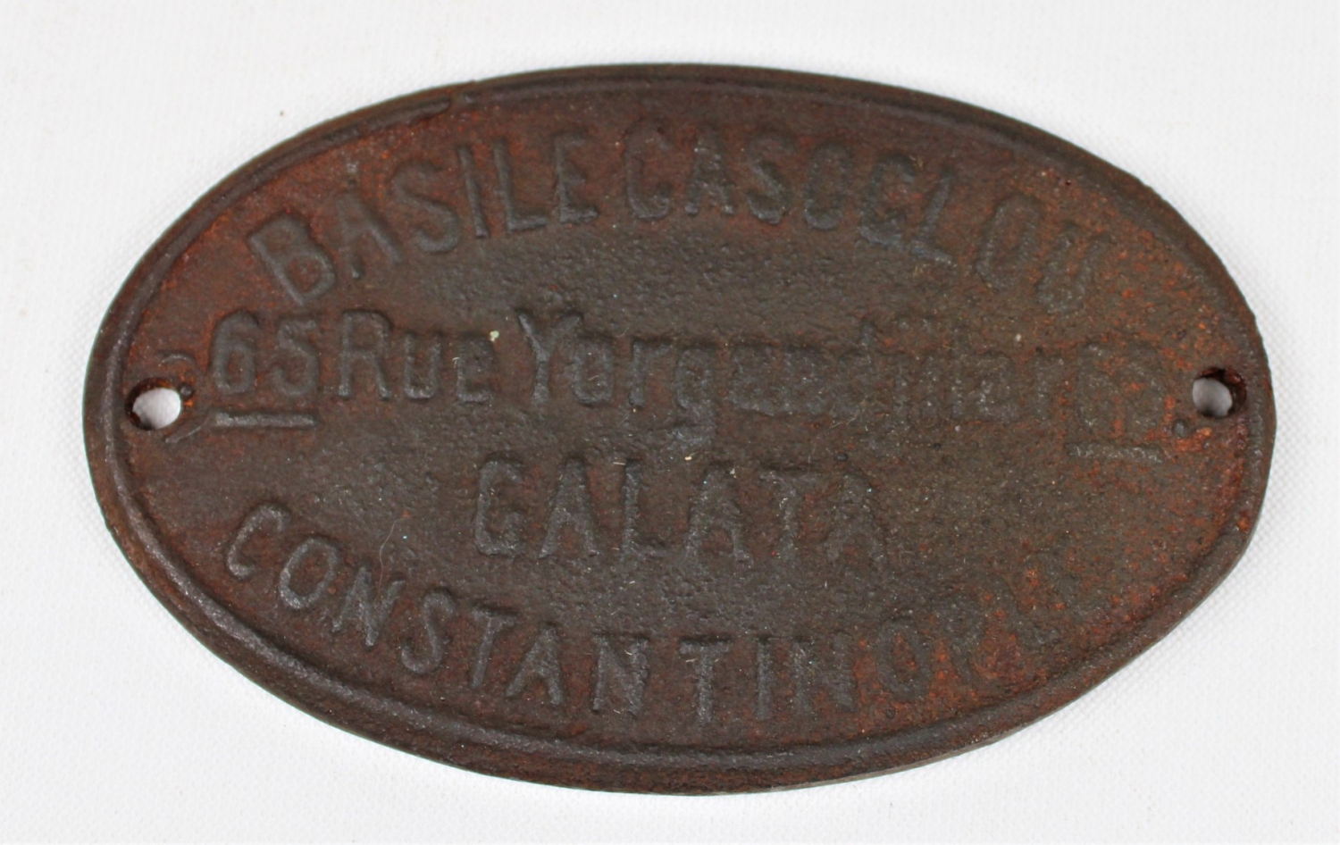 Constantinople Basile Casoglu Galata yazılı metal plaka 6x10 cm