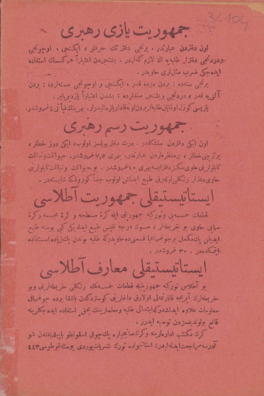 Ahmed Kemal Matbaası, İstanbul, 1927, 15x22 cm, Cumhuriyet mektepleri için