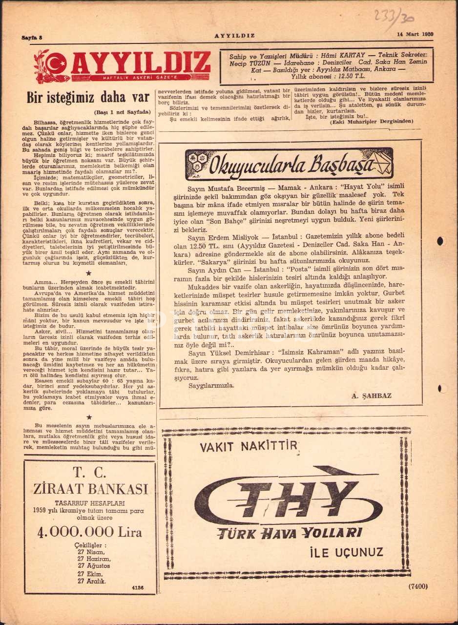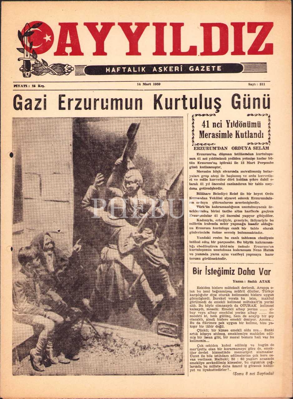 Ayyıldız askerî gazete 311. sayı, 14 Mart 1959, 8 sayfa, 25x34 cm, sayfaları açılmamış haliyle