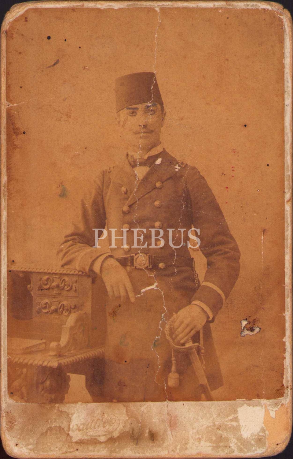 Subay hatıra fotoğrafı, Sebah&Joaillier Fotoğrafhanesi, 10x14 cm, epey yıpranmış haliyle