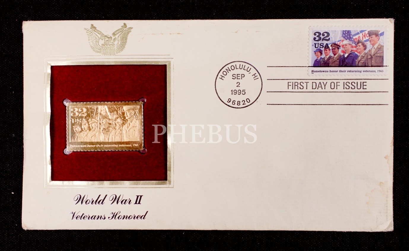 2. Dünya Savaşı [1945] gazi onur pulu ve ilk gün zarfı, 2.5x4 cm, zarf hafif yıpranmış haliyle