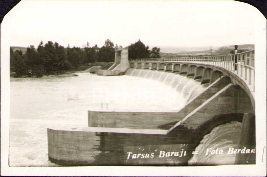 Tarsus Barajı/Mersin, Foto Berdan, arkasında bayram tebrik notu mevcut, 6x9 cm, alt köşesi kırık ve üst köşeleri kesilmiş haliyle