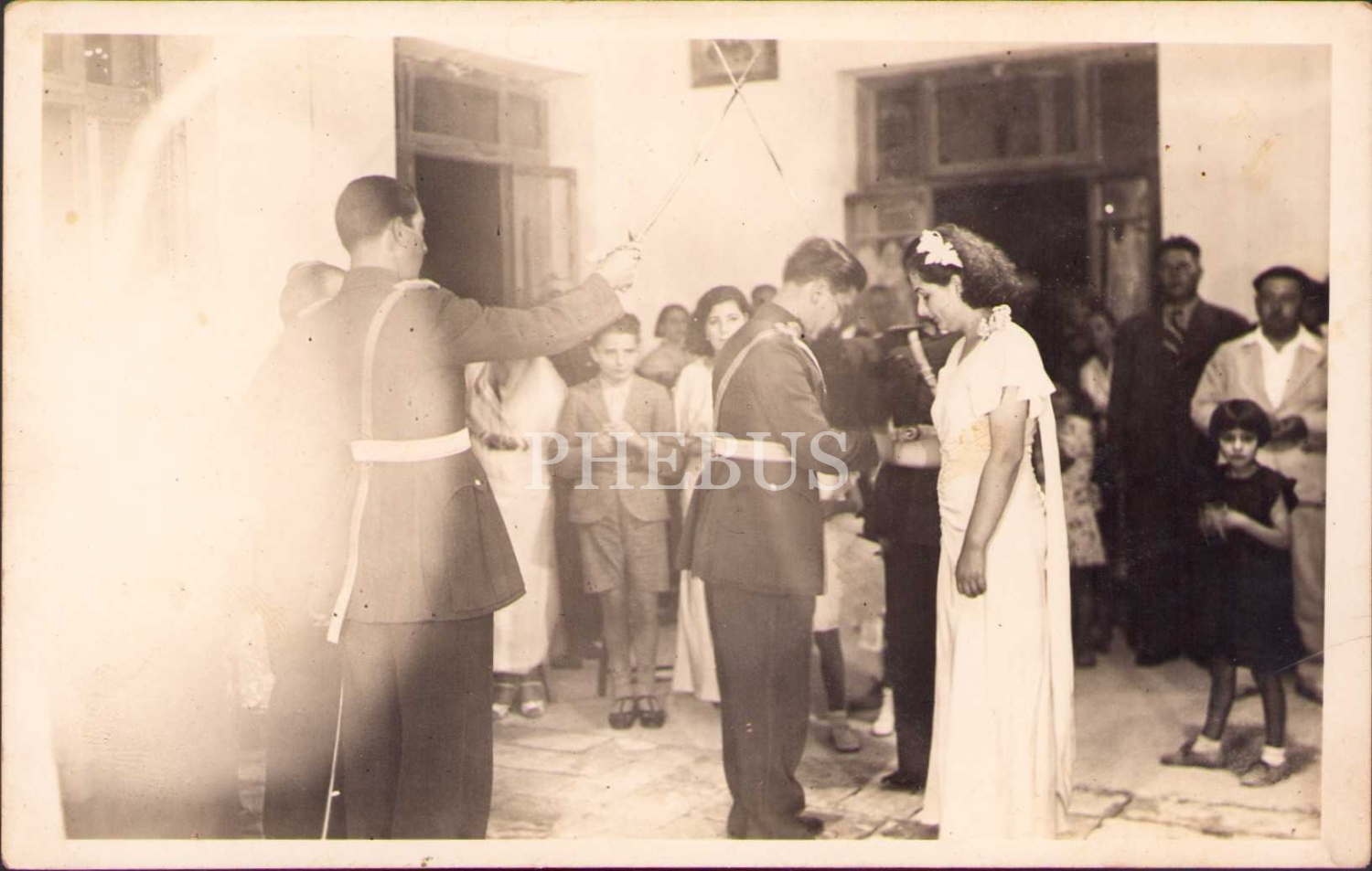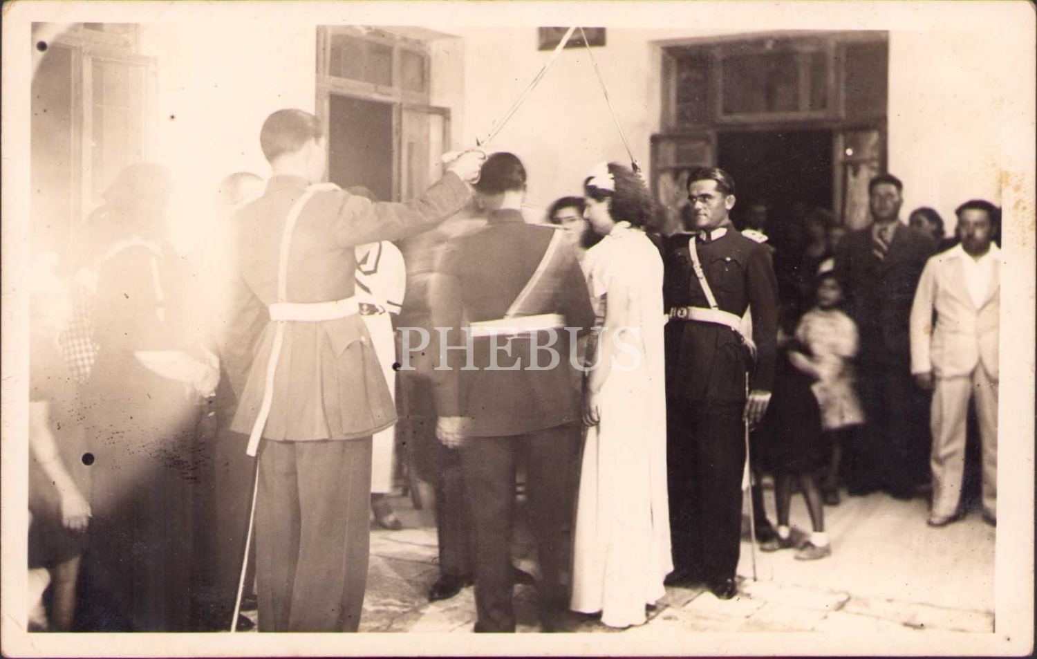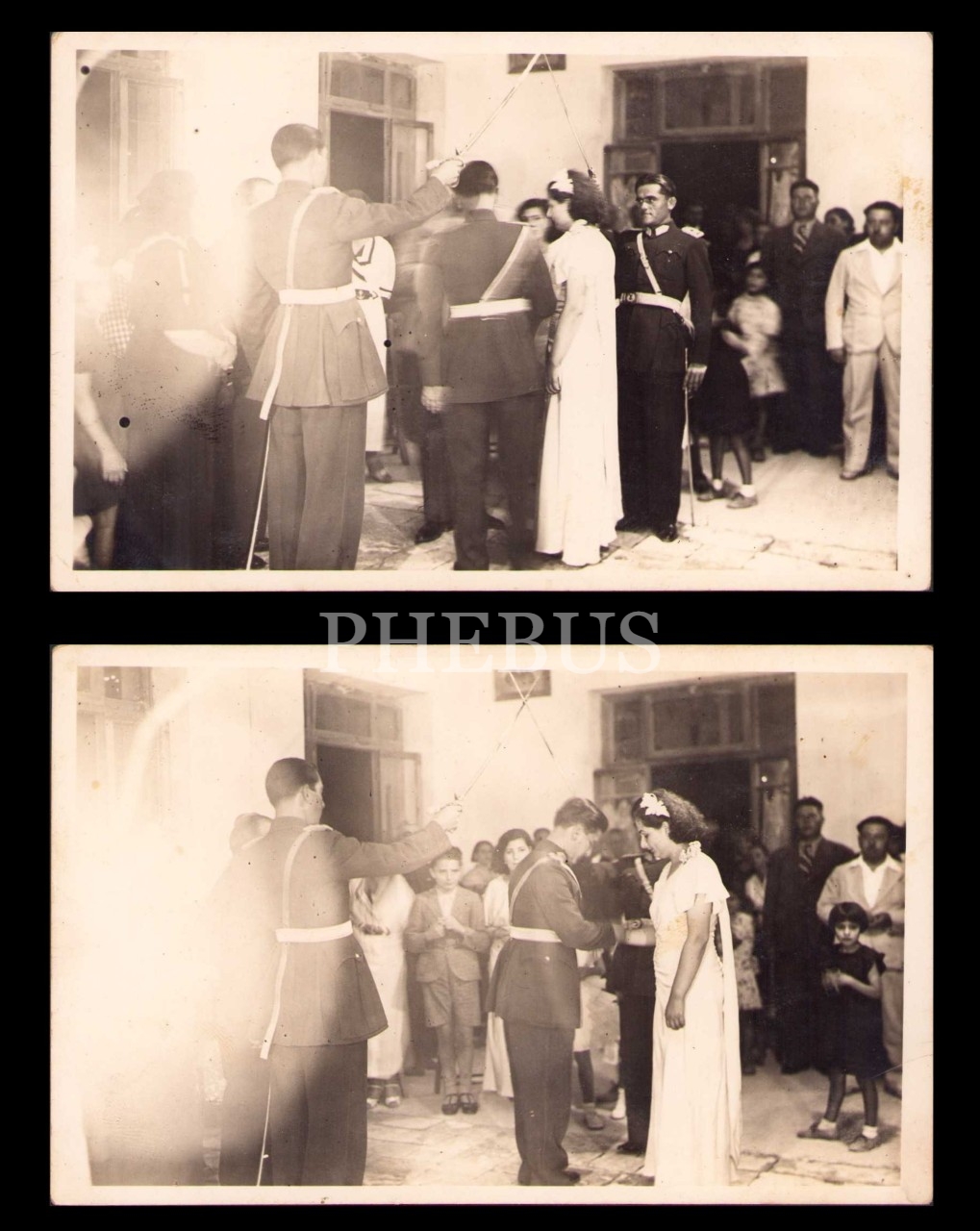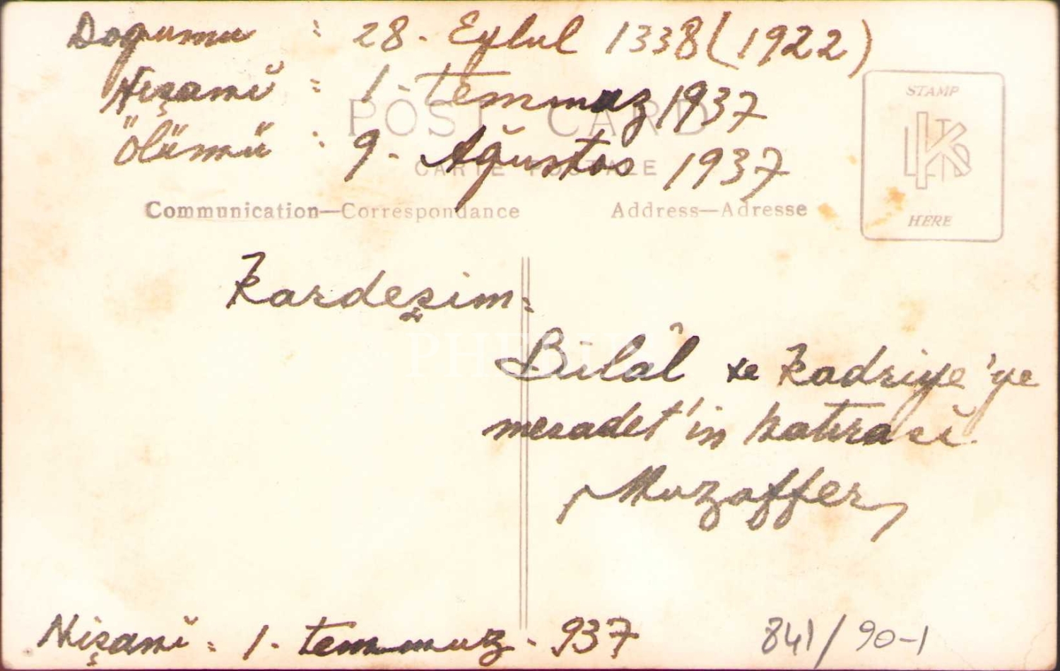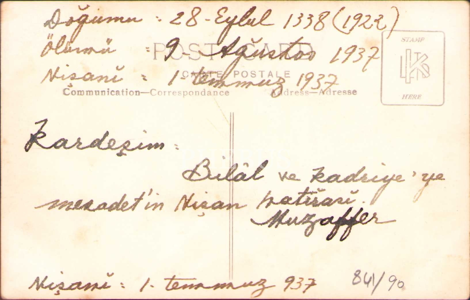 1937'deki bir nişan törenine ait iki adet fotoğraf, arkası yazılı, hafif yıpranmış haliyle