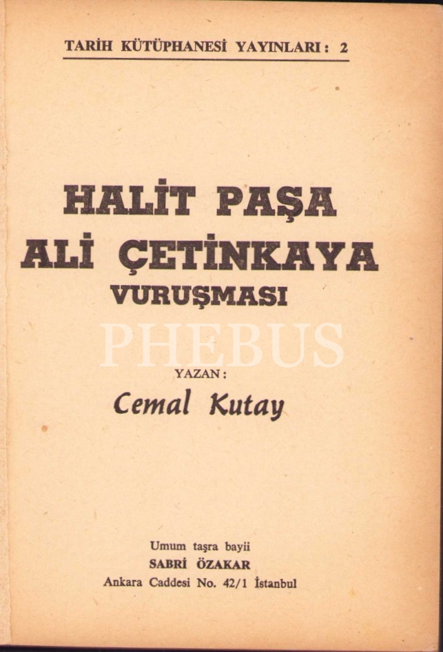 Halit Paşa Ali Çetinkaya Vuruşması, Cemal Kutay, Tarih Kütüphanesi Yayınları, İstanbul 1955, 109 s., 12x16 cm, kapağı yıpranmış haliyle