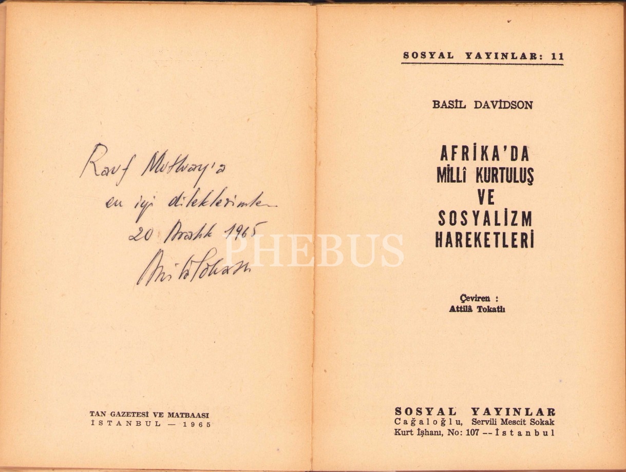 Afrika'da Millî Kurtuluş ve Sosyalizm Hareketleri, Basil Davidson, çev. Attilâ Tokatlı, çevirmeninden ithaf ve imzalı, Sosyal Yayınlar, İstanbul 1965, 157 s., 14x20 cm, kapak kenarları yıpranmış haliyle