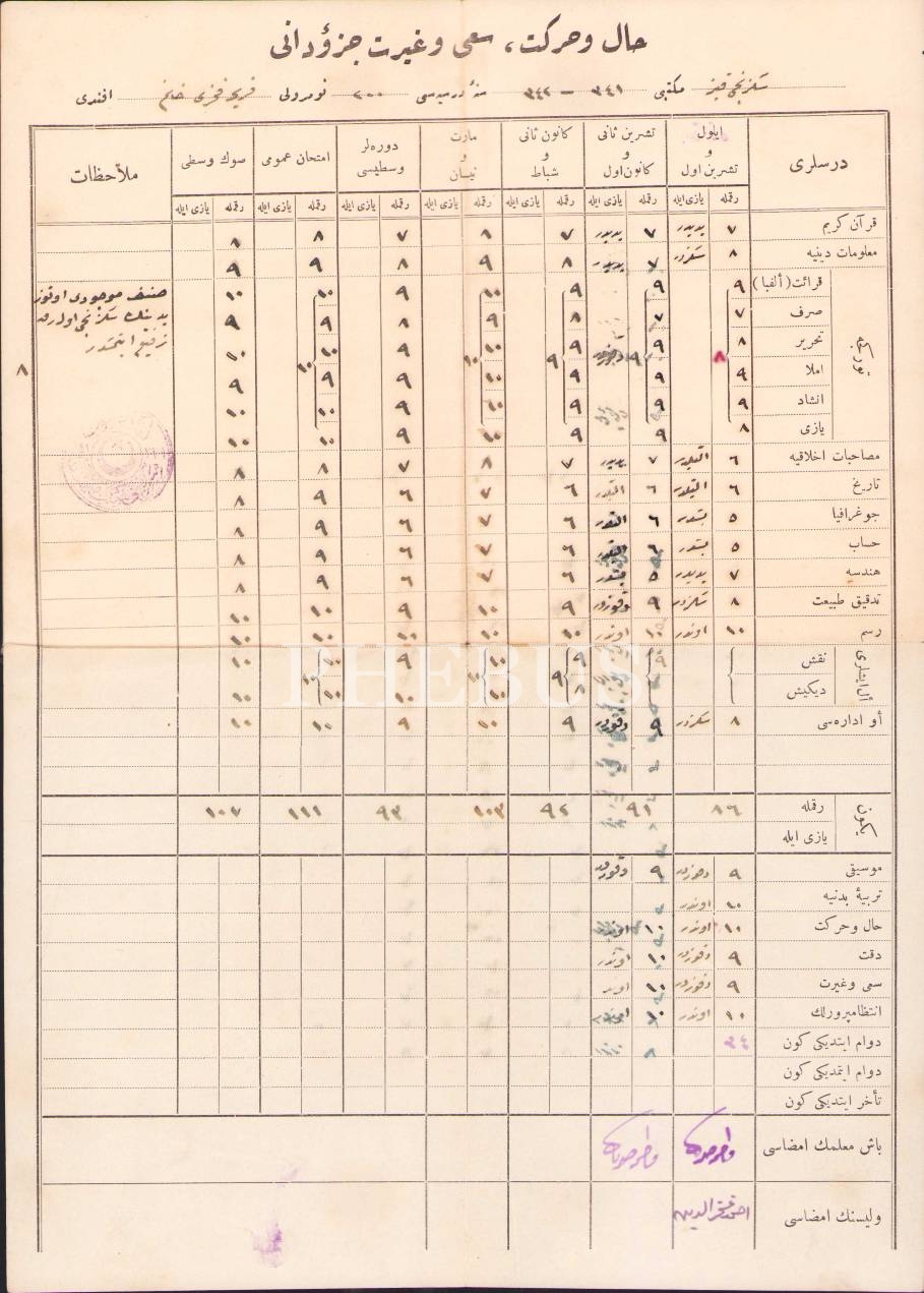 Osmanlıca Sekizinci Kız Mektebi 1341-42 ders yılı karnesi, 21x30 cm, hafif yıpranmış haliyle