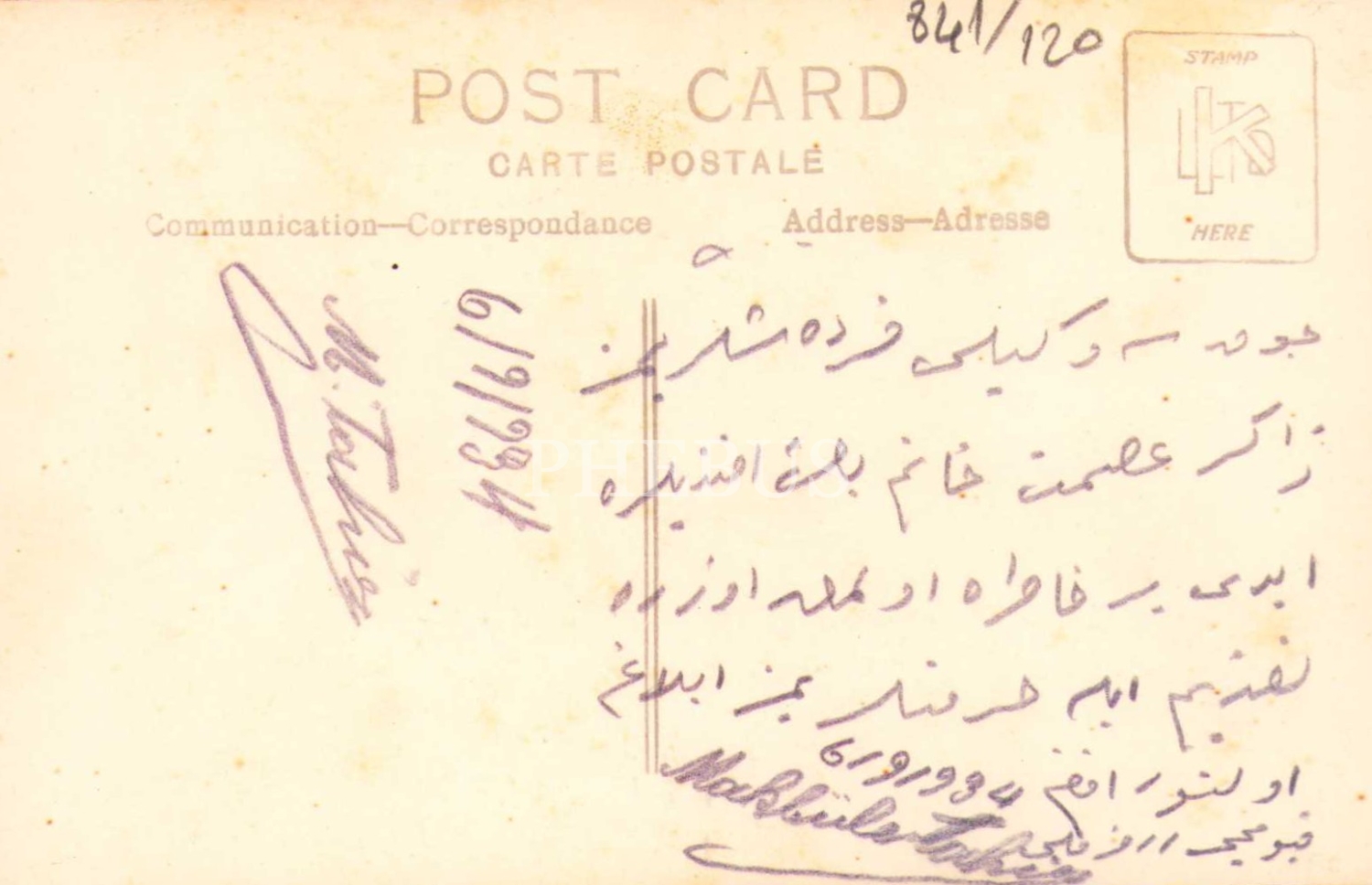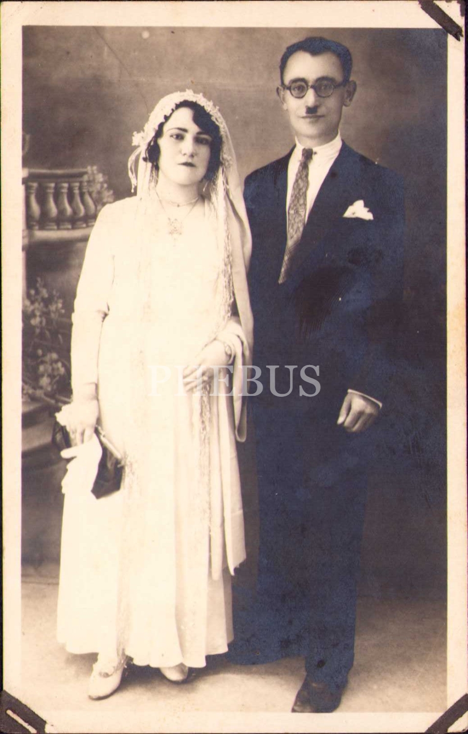 1934 tarihli Osmanlıca ithaf yazısıyla düğün hatıra fotoğrafı, üst köşesi kırık haliyle