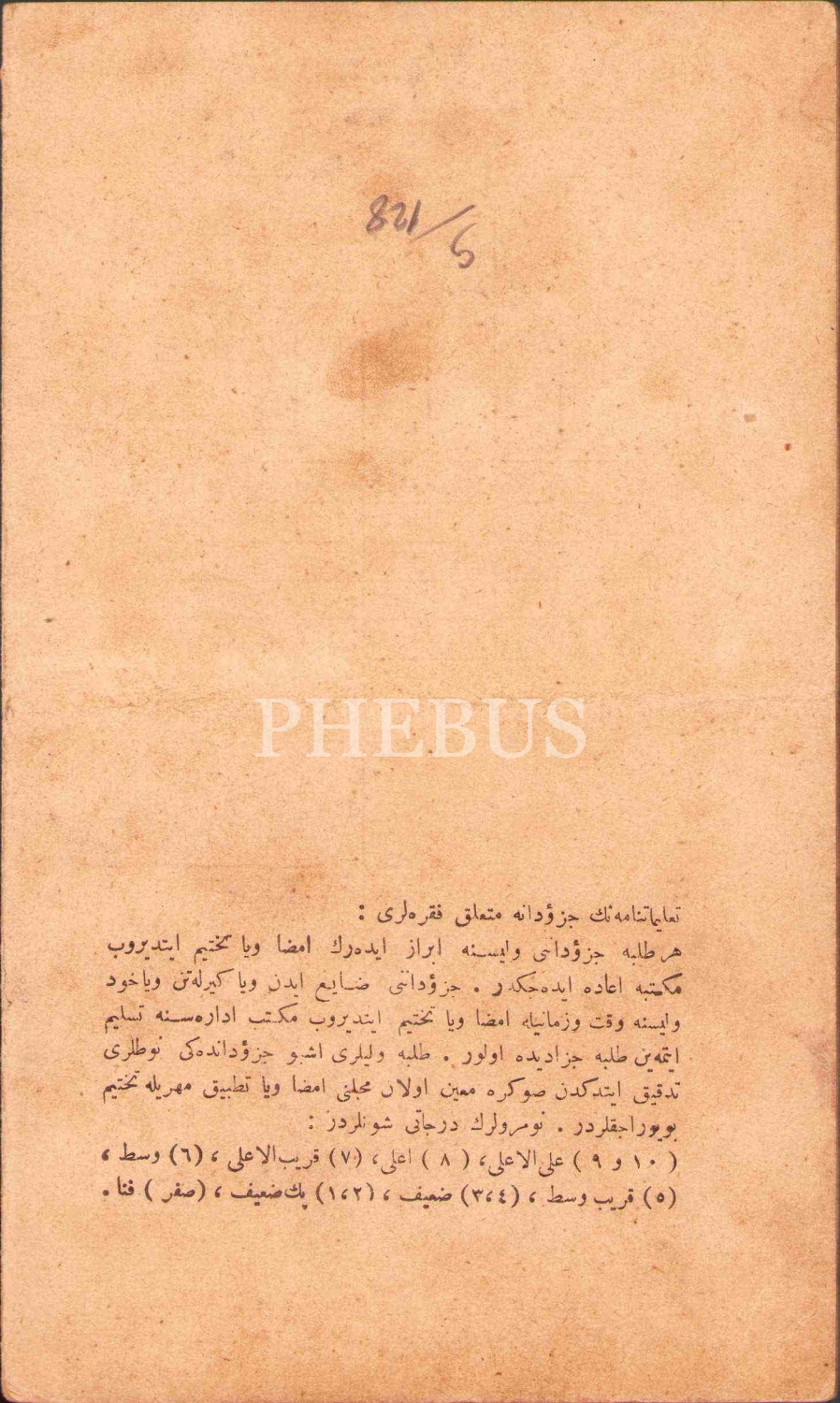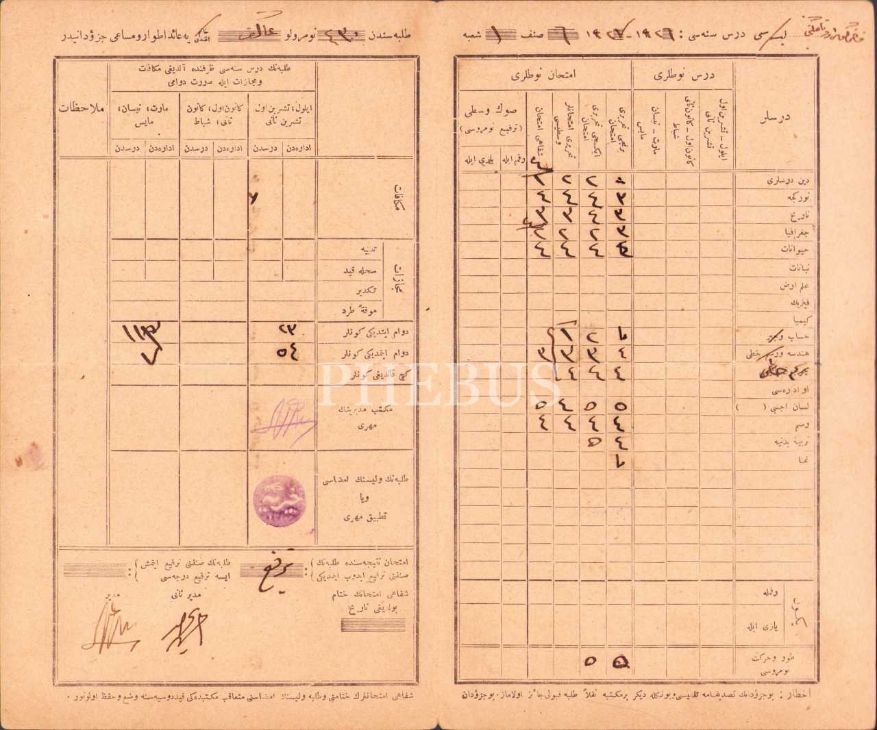 Osmanlıca Kadıköy Orta Erkek Mektebi etvar ve mesai cüzdanı [öğrenci karnesi], 1926-27 ders yılına ait, 20x24 cm, hafif yıpranmış haliyle
