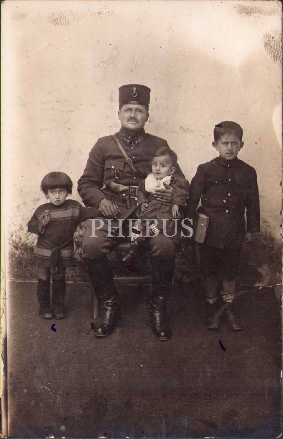 Subay ve çocuklarının hatıra fotoğrafı, Osmanlıca ithaflı ve 1339 tarihli, yer yer soyulmuş haliyle