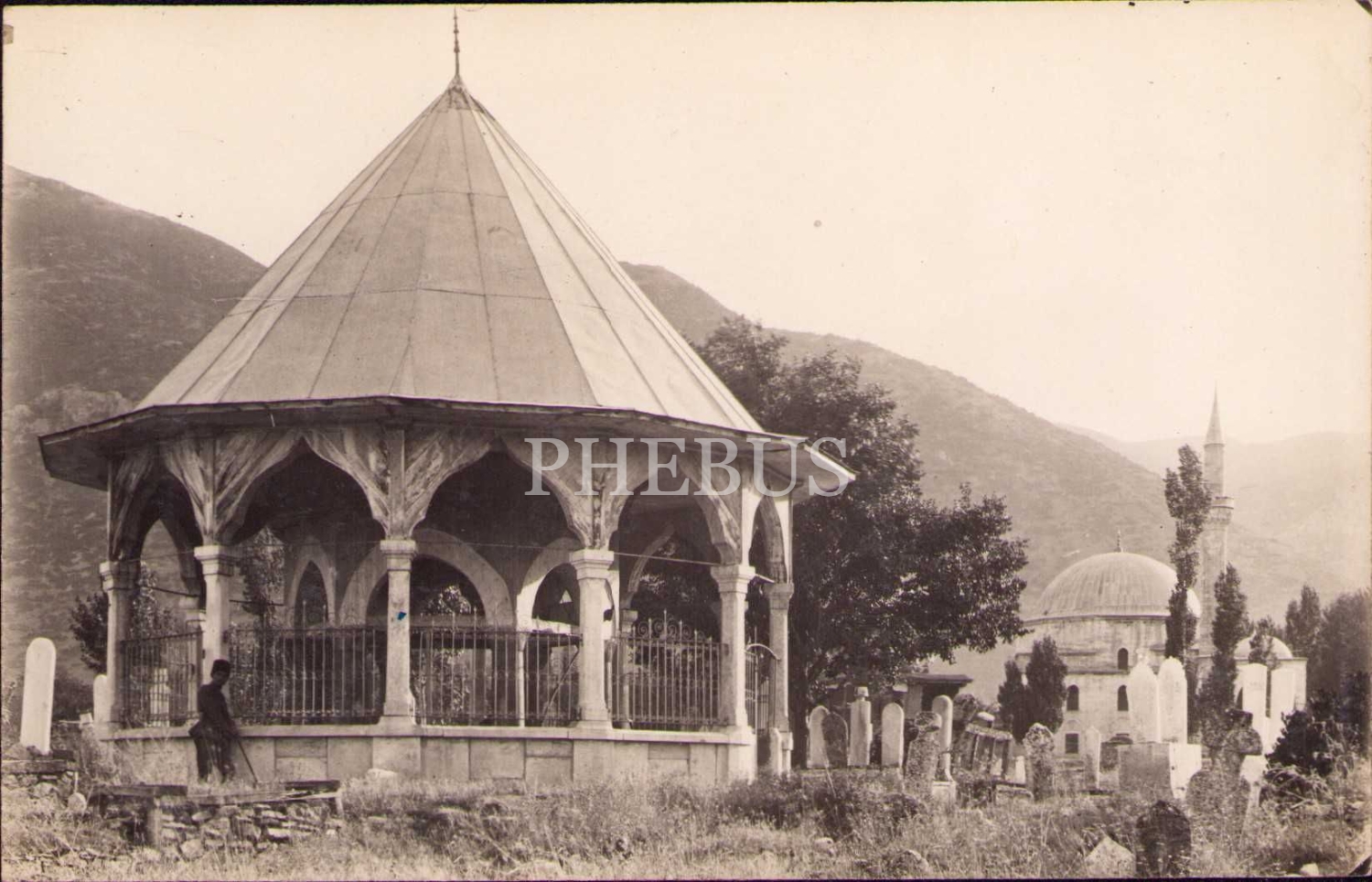 Konya Alaaddin Cami kitabeleri ve türbeye ait 4 adet fotoğraf, arkası Osmanlıca yazılı