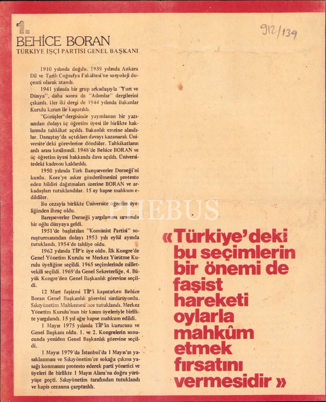 Türkiye İşçi Partisi seçim propagandası, 20x25 cm, hafif yıpranmış haliyle