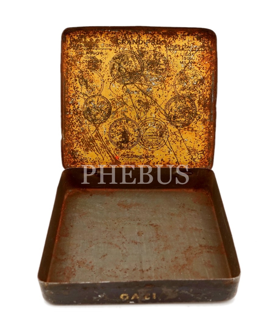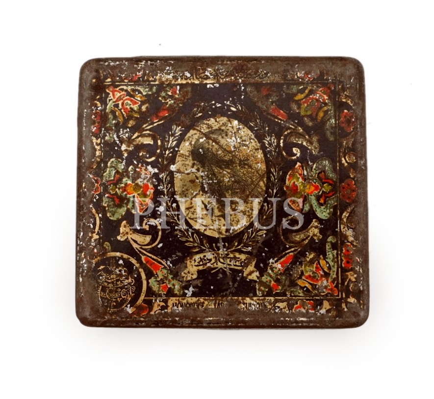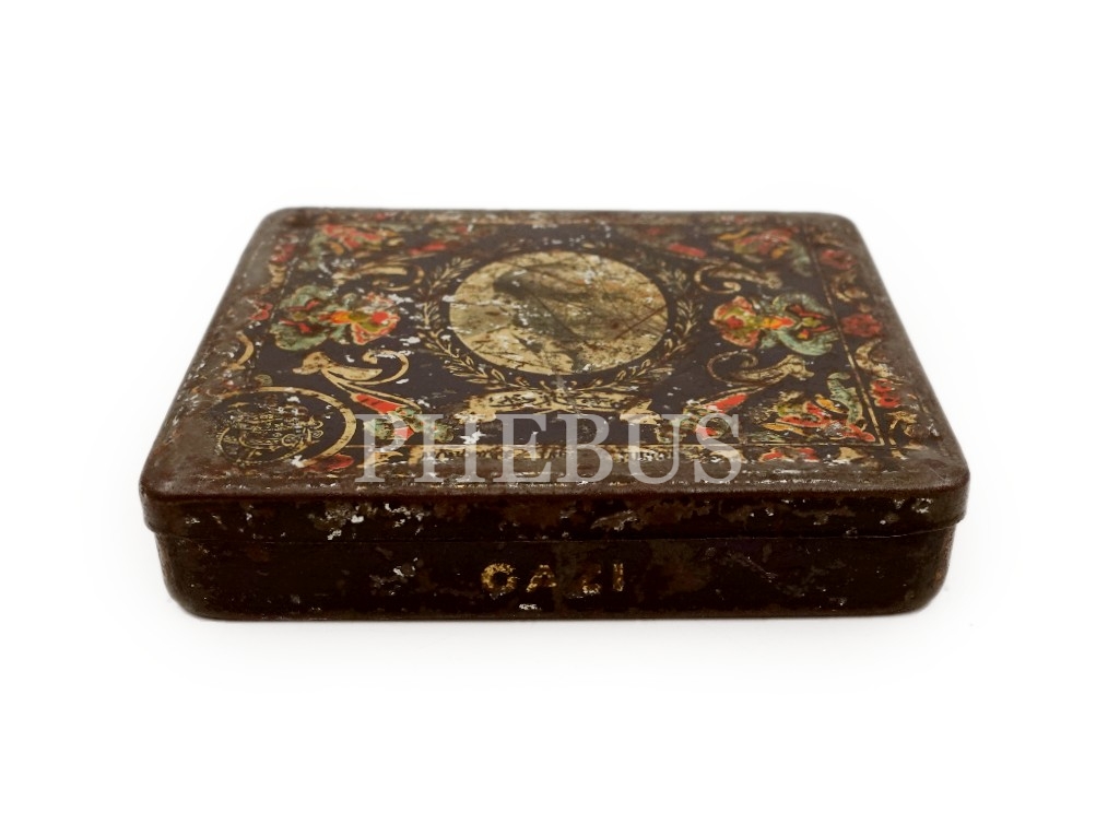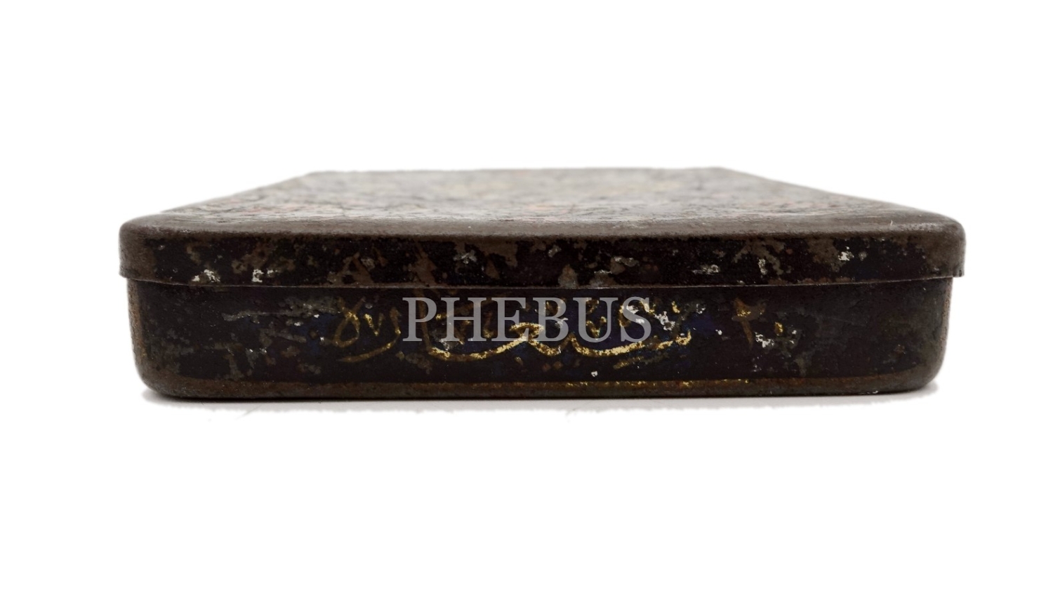 Osmanlıca Gazi yazılı ve Atatürk görselli boş teneke kutu, 1x7x8 cm, yıpranmış haliyle