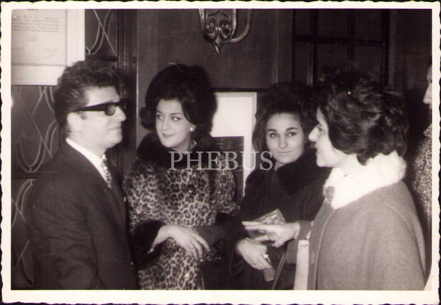 Artist fotoğrafı: Zeki Müren ve beraberindekiler, 1955 tarihli, köşeleri hafif soyulmuş haliyle