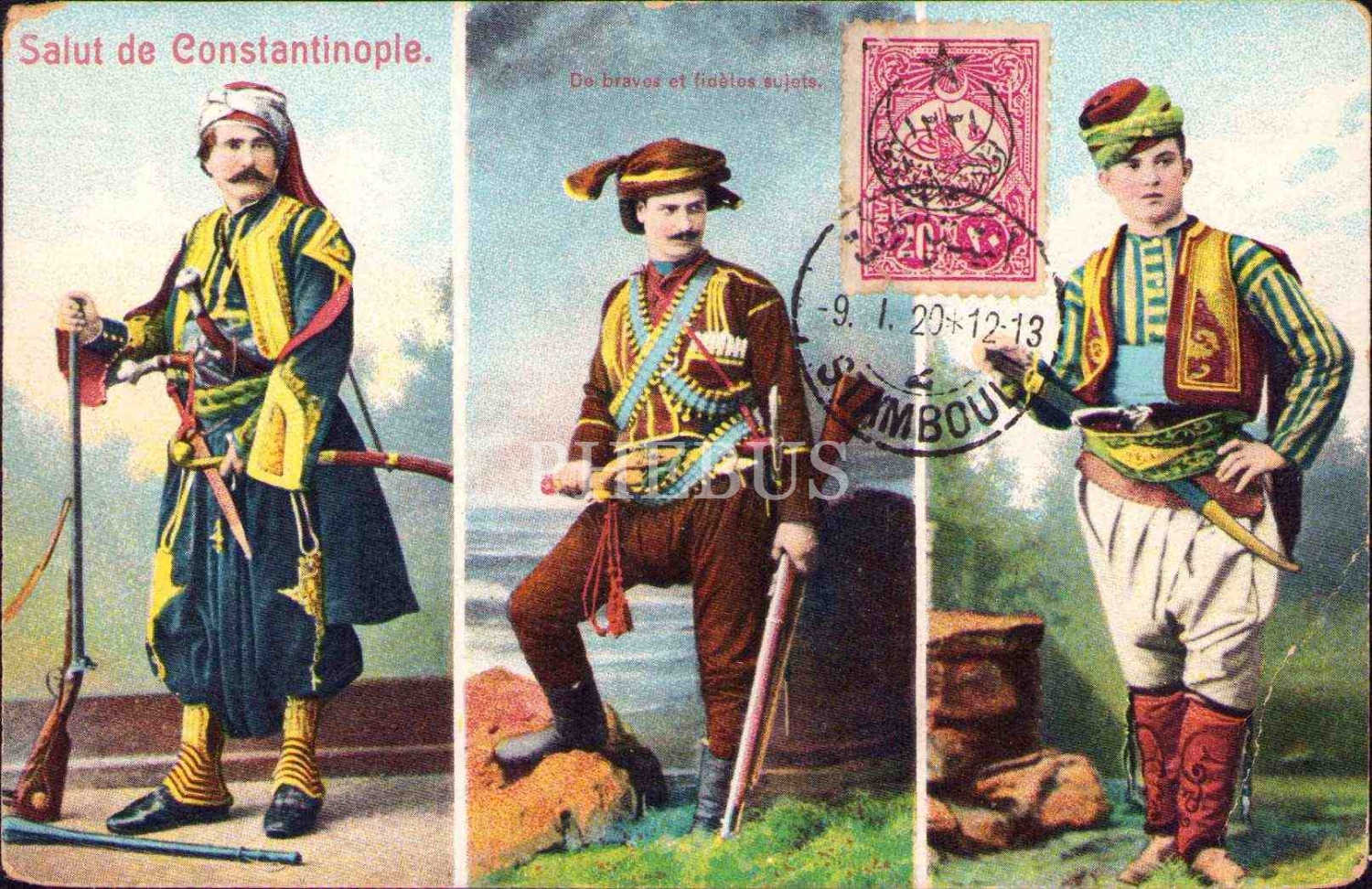 Yöresel kıyafetli askerler, Constantinople, köşeleri soyulmuş haliyle