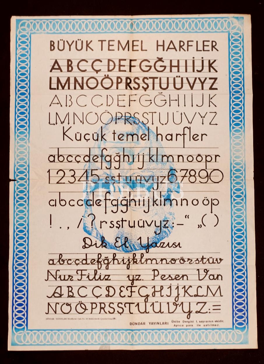 Dündar Yayınları Ünite Dergisi olarak alfabe afişi, 49x68 cm, bir kenarı hafif yırtık haliyle