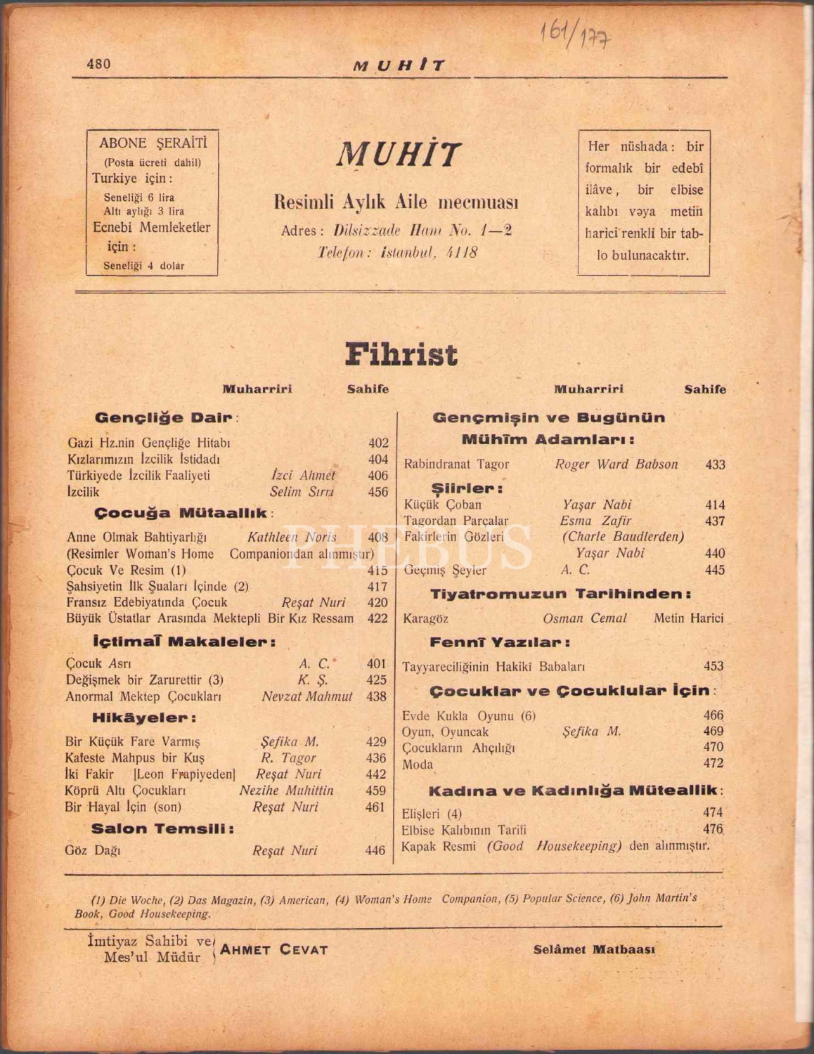 İçeriğinde Reşat Nuri Güntekin, Yaşar Nabi Nayır, Selim Sırrı vd.'ne ait yazılar yer almaktadır.