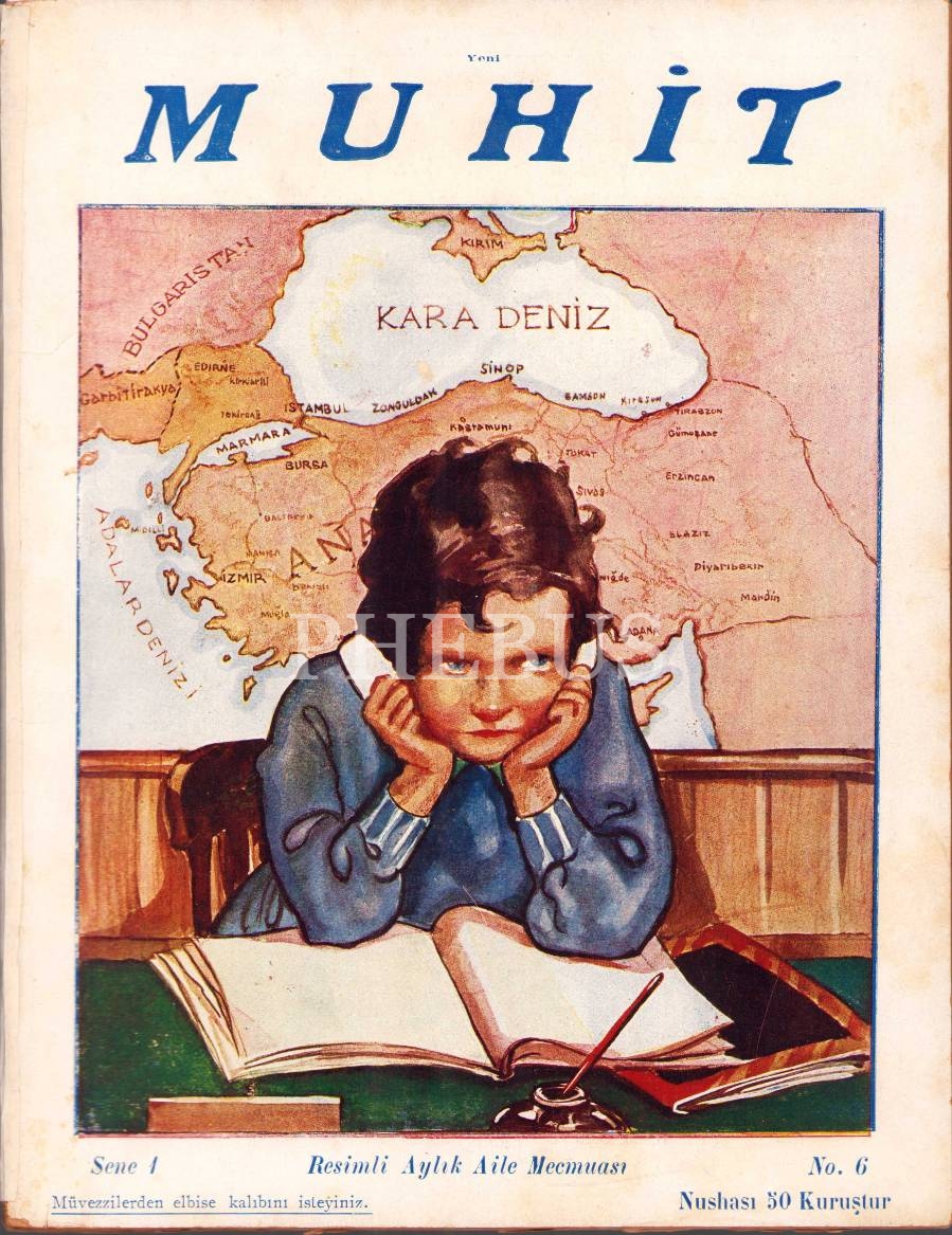 Yeni Muhit aile dergisi 6. sayı, Nisan 1929, 22x29 cm, kapağı hafif yıpranmış haliyle