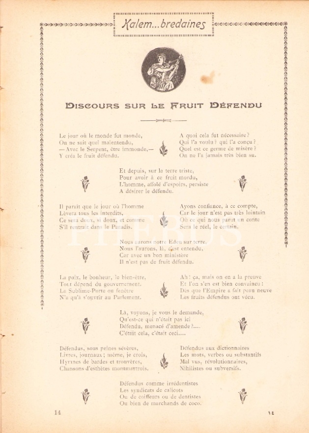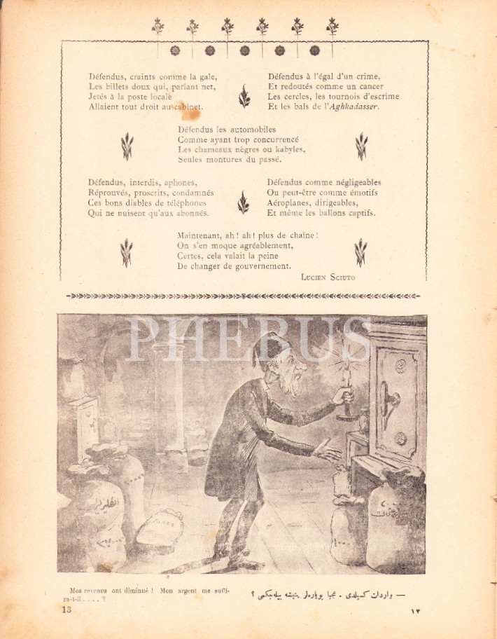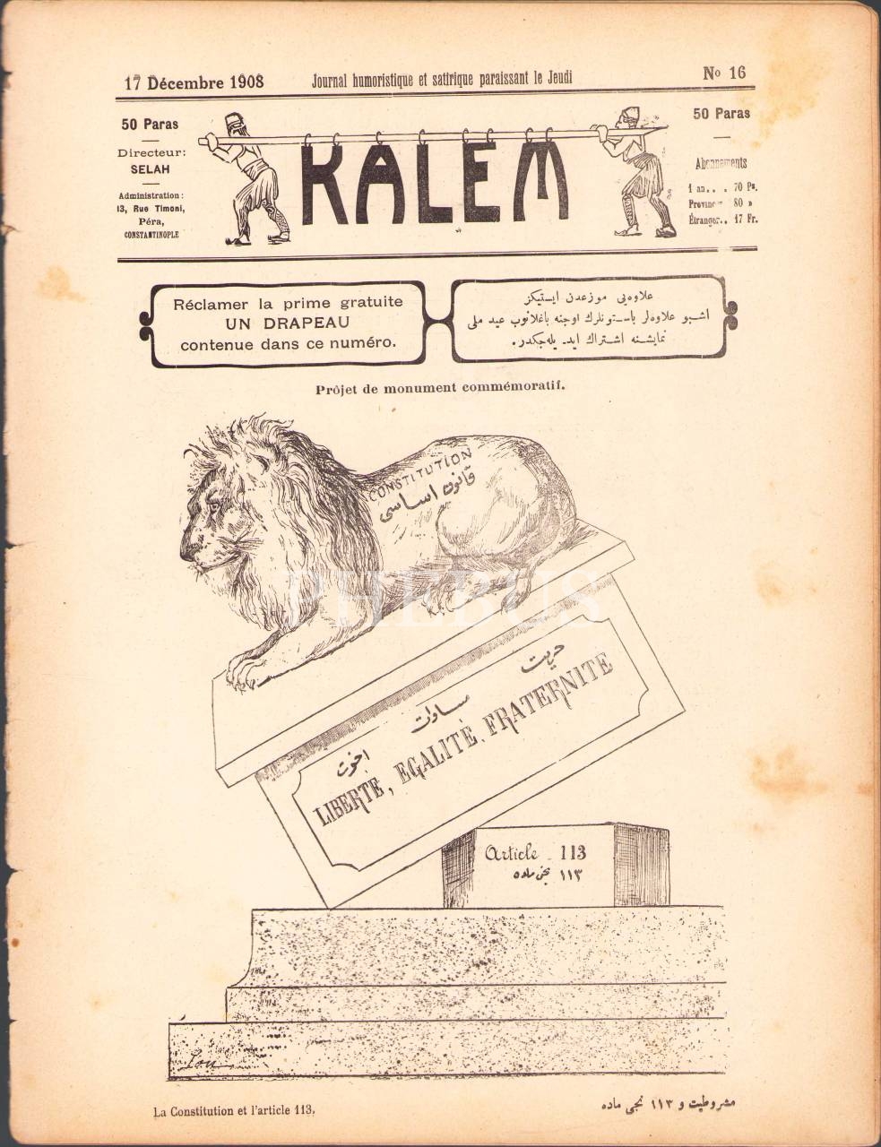 Osmanlıca-Fransızca Kalem dergisi 16. sayı, 17 Aralık 1908, 22x29 cm, sırtı yıpranmış haliyle