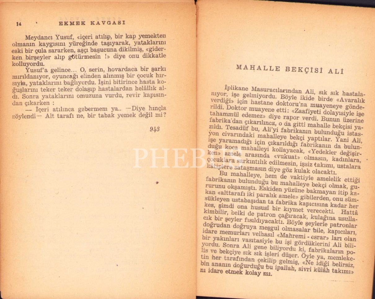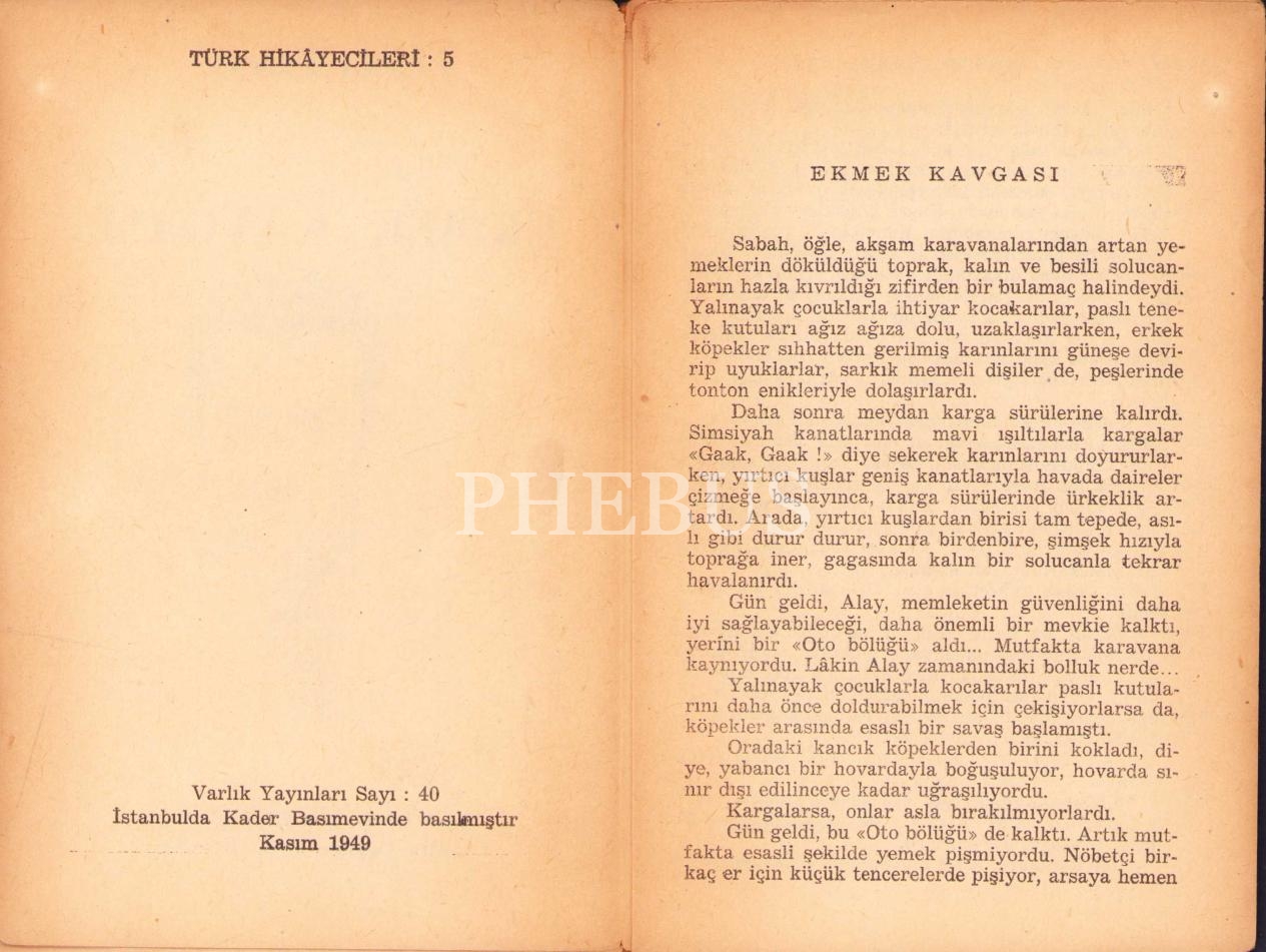 Ekmek Kavgası, Orhan Kemal, Varlık Yayınları, İstanbul 1949, 112 s., 11x17 cm, kapağı yıpranmış haliyle