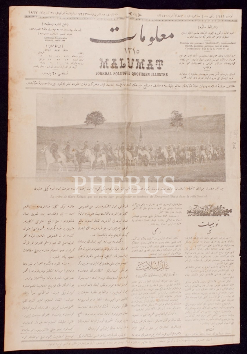 Osmanlıca Malumat dergisi 151. sayı, 31 Teşrinievvel 1897, Ertuğrul Gazi'nin türbesini ziyaret için yola çıkan Karakeçili aşiretine ait ön kapak görseliyle, 31x46 cm, hafif yıpranmış haliyle