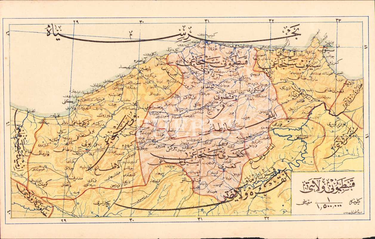 Osmanlıca Kastamonu Vilayeti haritası, 20x31 cm, kenarları hafif yıpranmış haliyle
