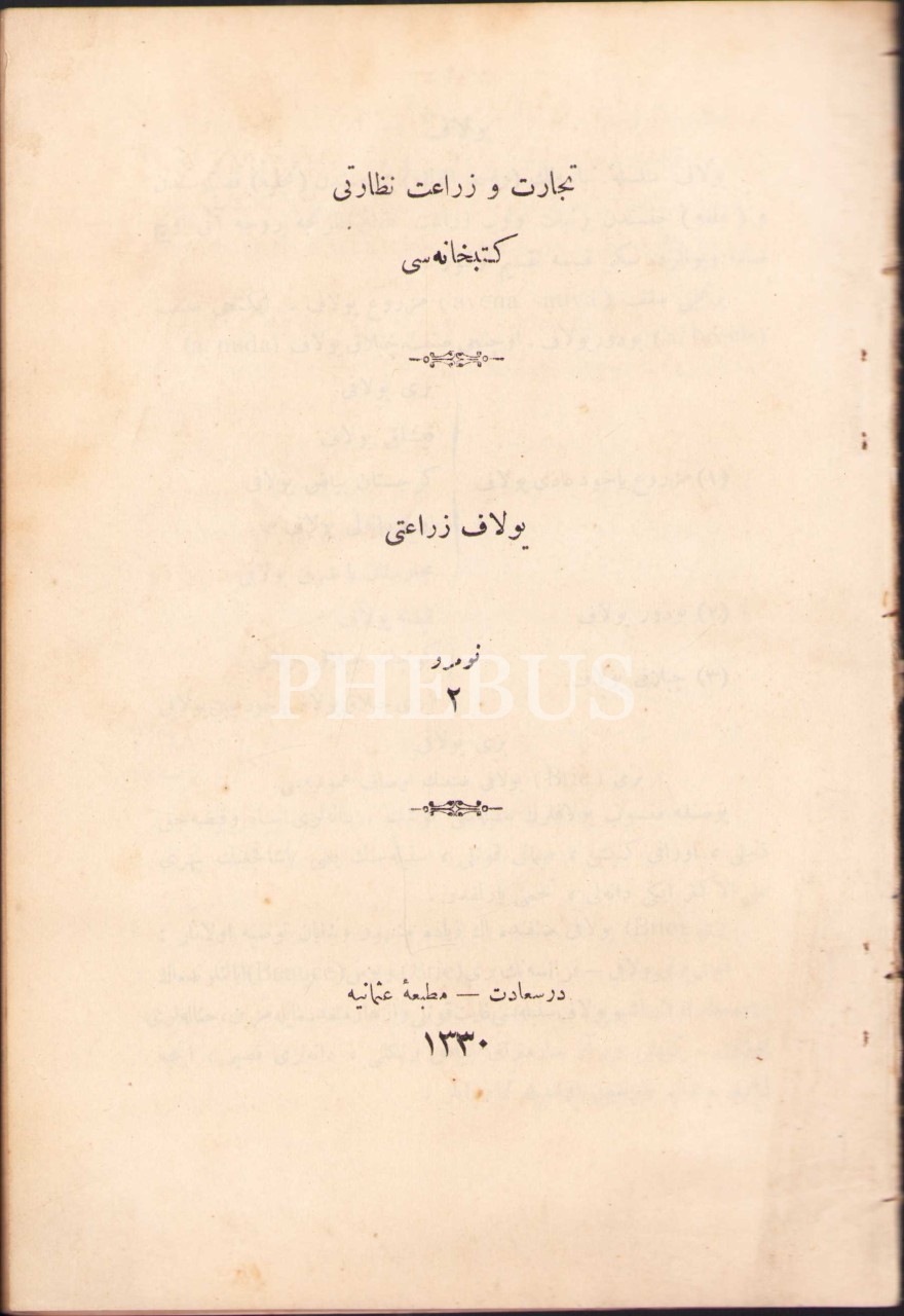 Osmanlıca Yulaf Ziraati, Ticaret ve Ziraat Nezareti Kütübhanesi, Osmaniye Matbaası, İstanbul 1330, 27 s., 15x22 cm, ciltsiz haliyle