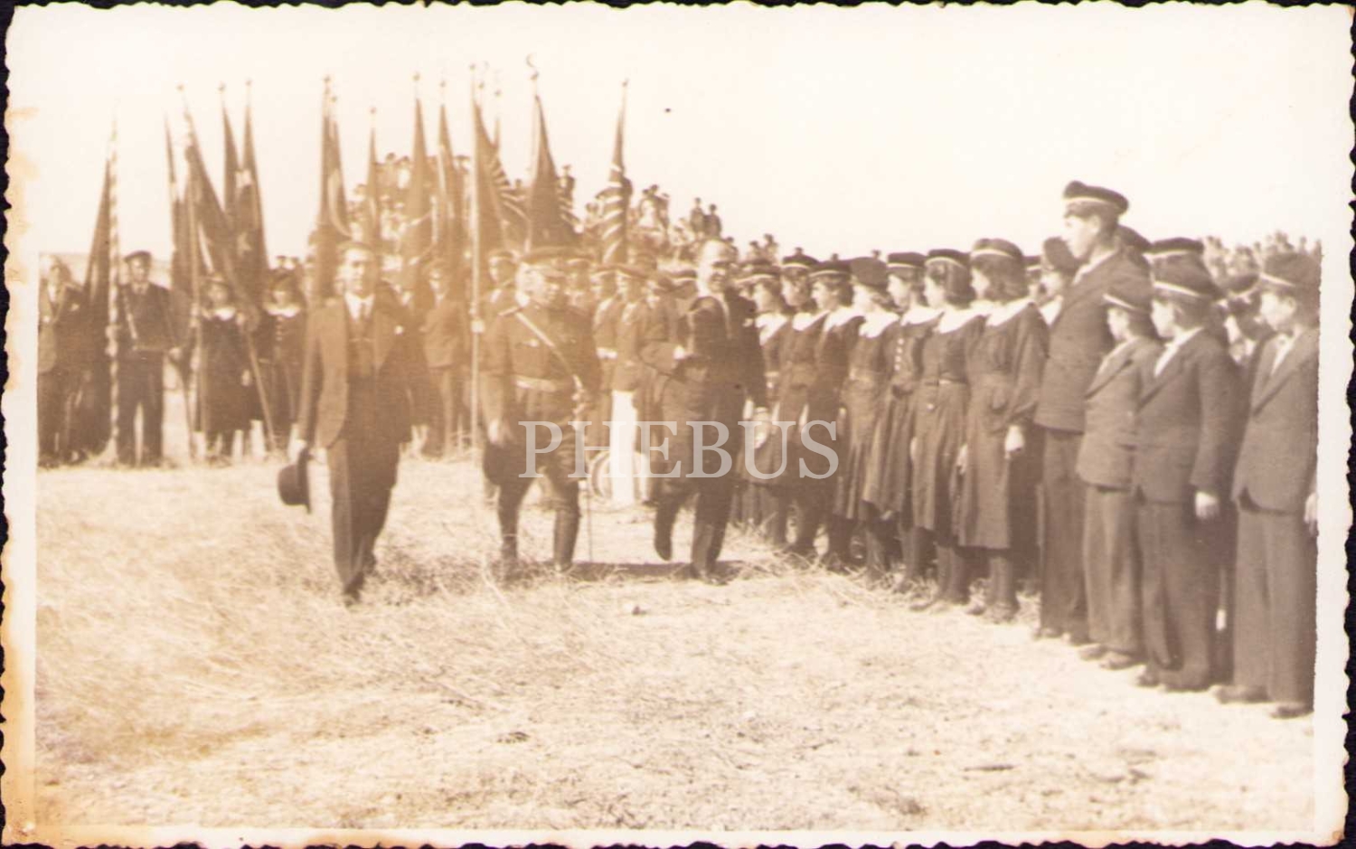 Türk ve CHP bayraklarının görüldüğü mekanda öğrencilerin önünden geçen devlet erkanı, kenarları hafif yıpranmış haliyle