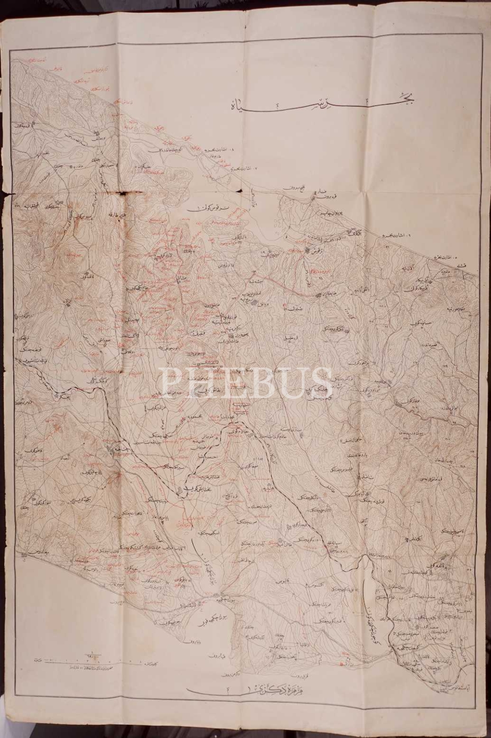 Osmanlıca İstanbul haritası, 67x100 cm, hafif yıpranmış haliyle