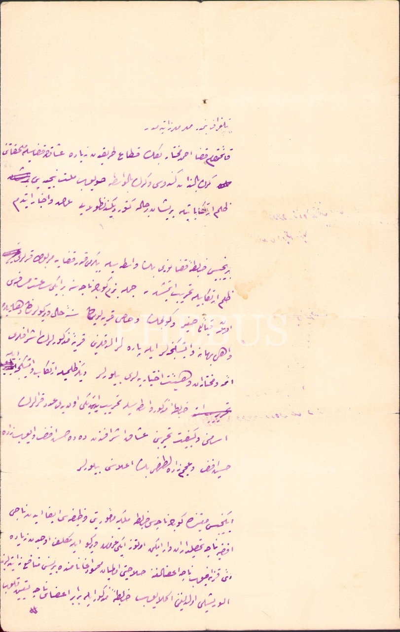 Ahmed Muhtar Bey'in kaymakam olduğu Uşak kazasında gerçekleşen zulüm ve soygunlara dair Osmanlıca ihbarname, 21x33 cm, hafif yıpranmış haliyle