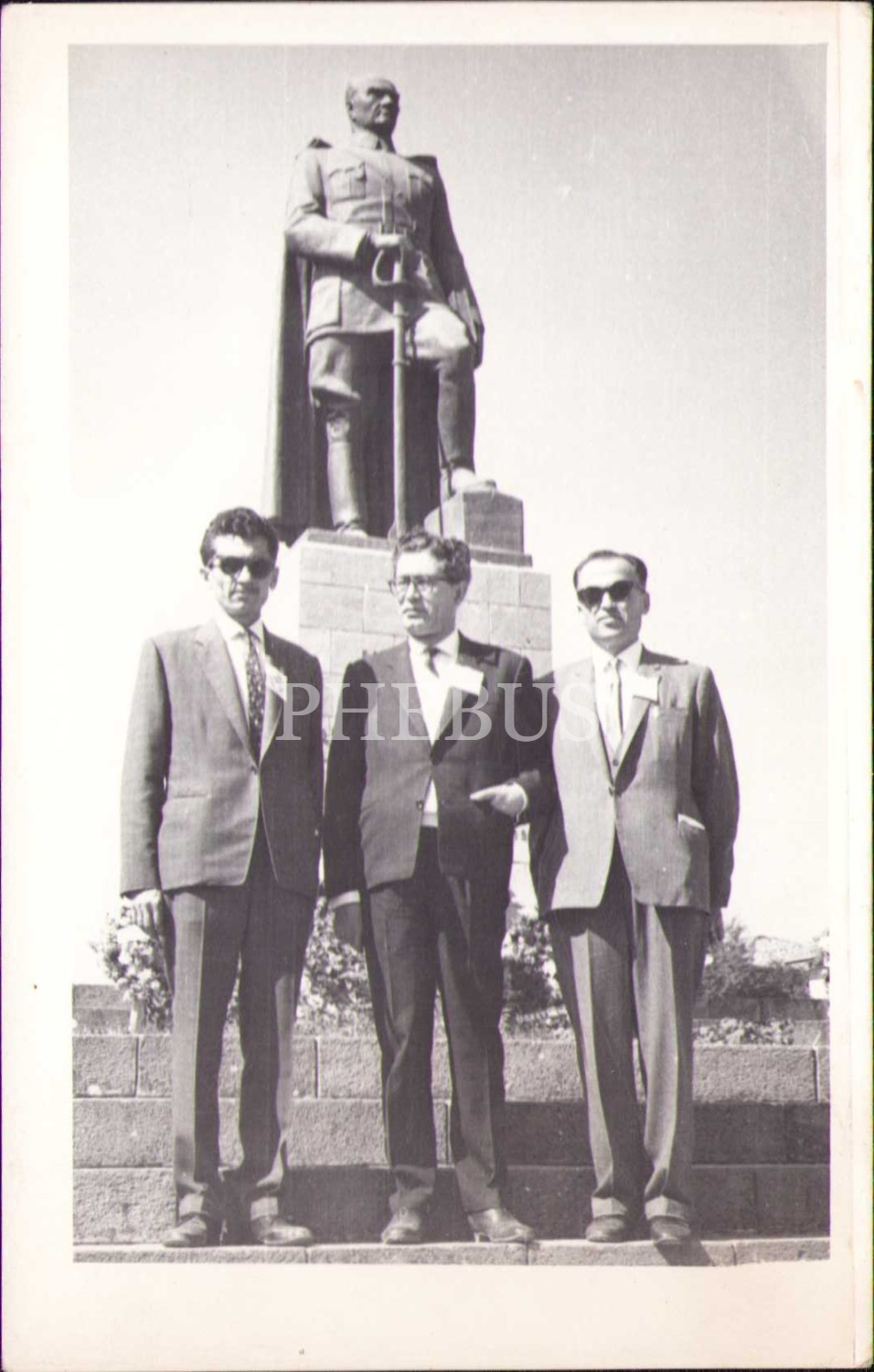 Mustafa Kemal Atatürk anıtı önünde hatıra fotoğrafı, köşeleri hafif soyulmuş haliyle