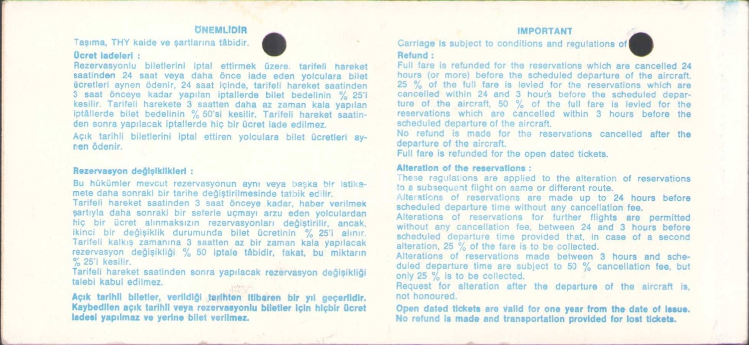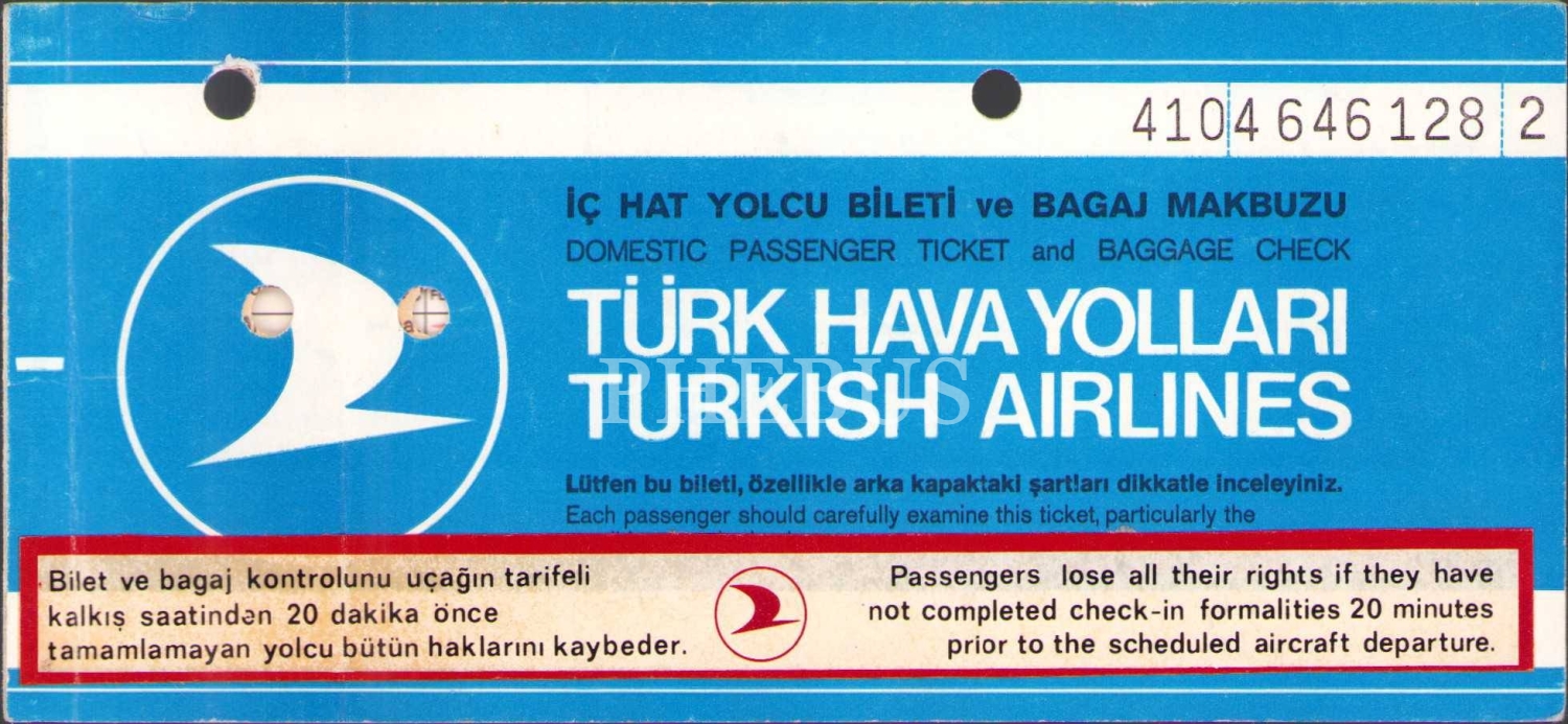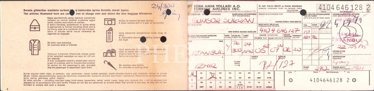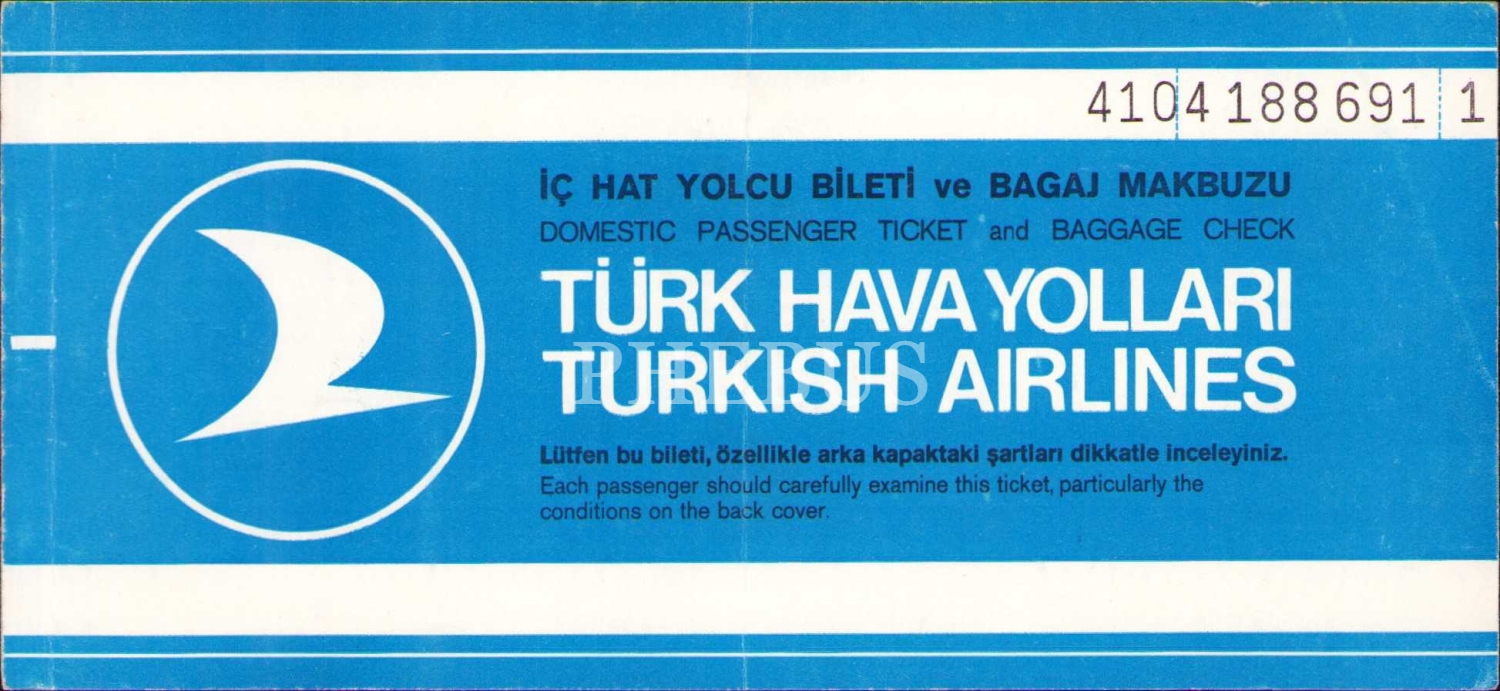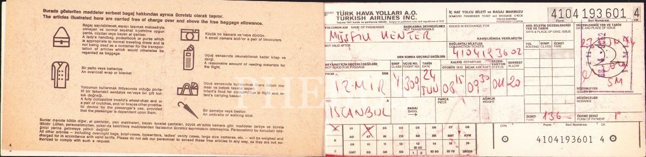 Müşfik Kenter, Mehlika Kenter vd.'ne ait dört adet THY bileti, 8x16 cm, ortadan kırık haliyle