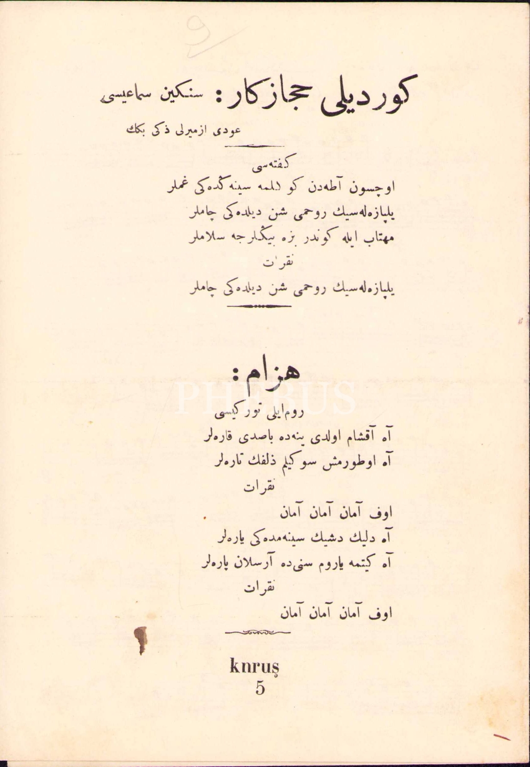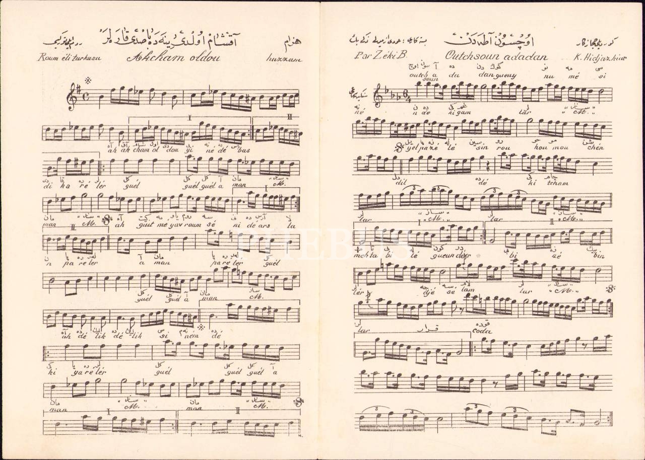 Udcu Kudmanizade Şamlı İskender yayınları ve Müntehabat serisinden Osmanlıca güfteli 12 adet nota, 14x20 cm, yorgun halleriyle