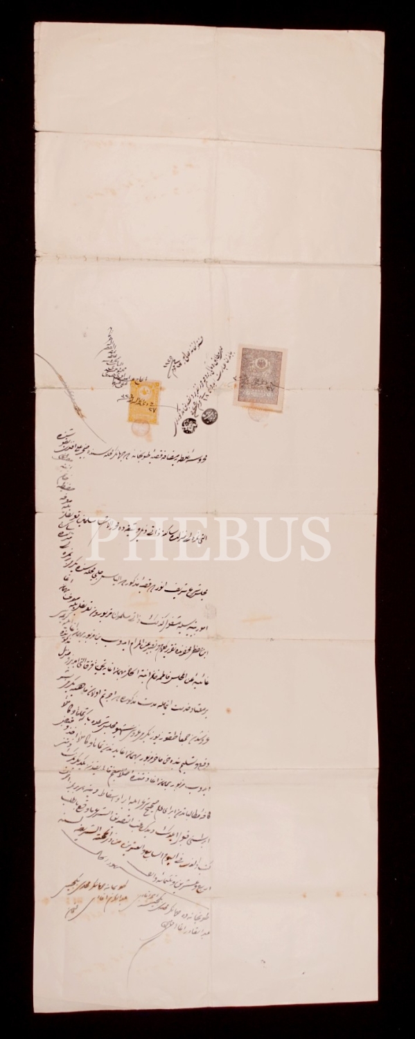 Osmanlıca hüccet/ibra senedi, Galata/İstanbul 1324, 28x82 cm, hafif yıpranmış haliyle